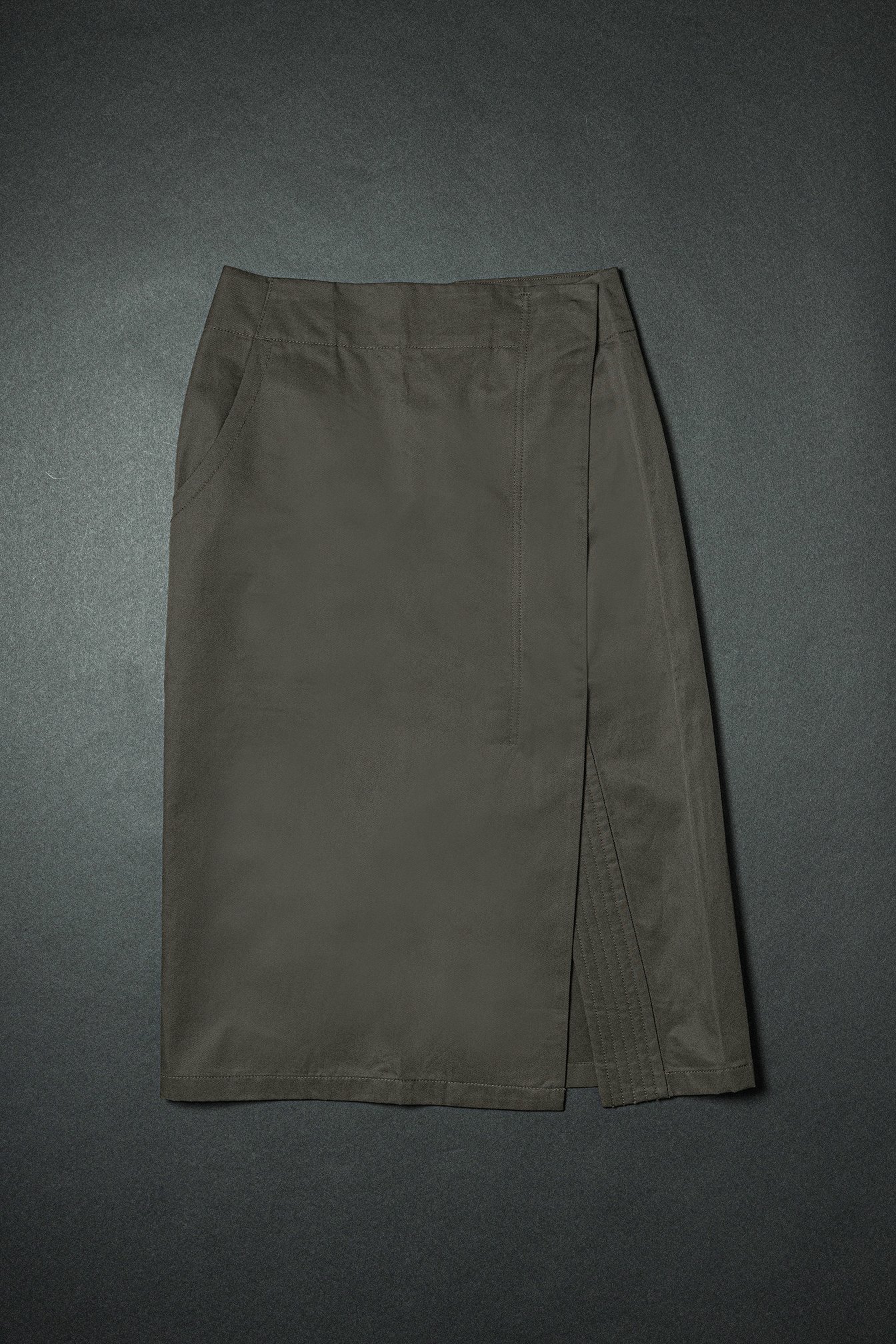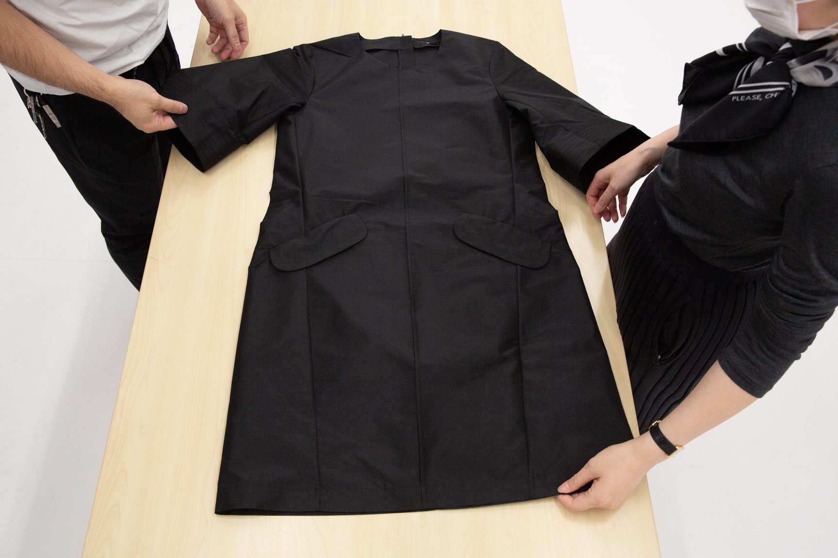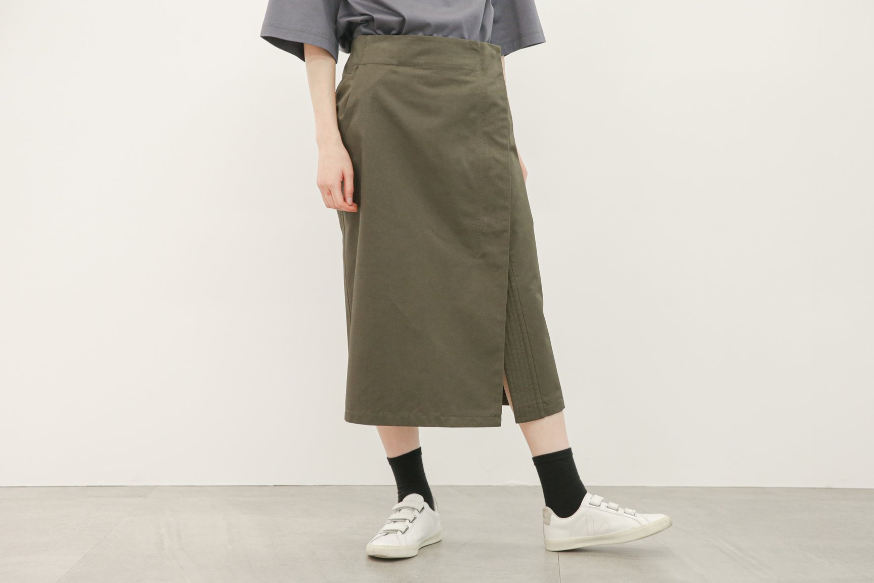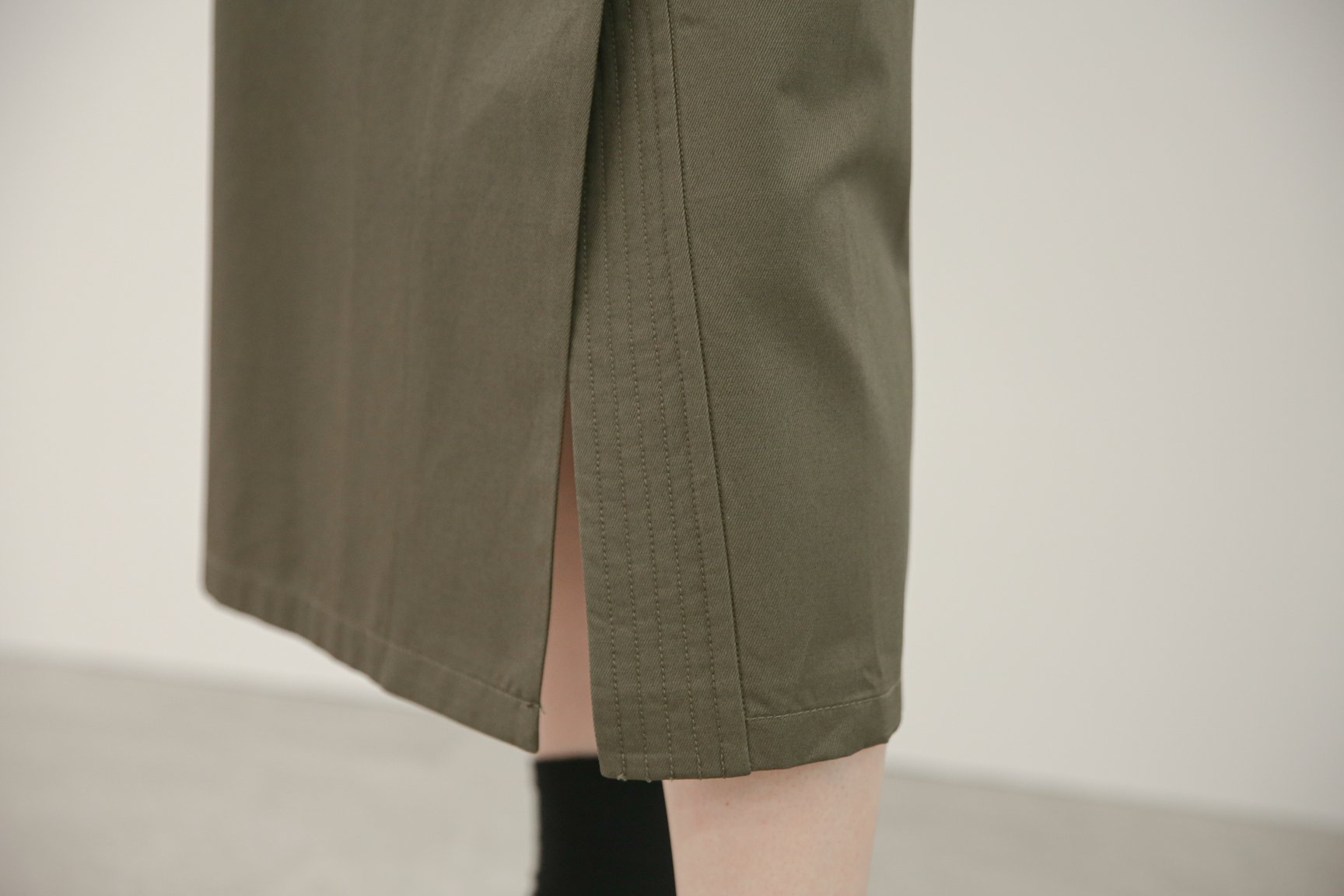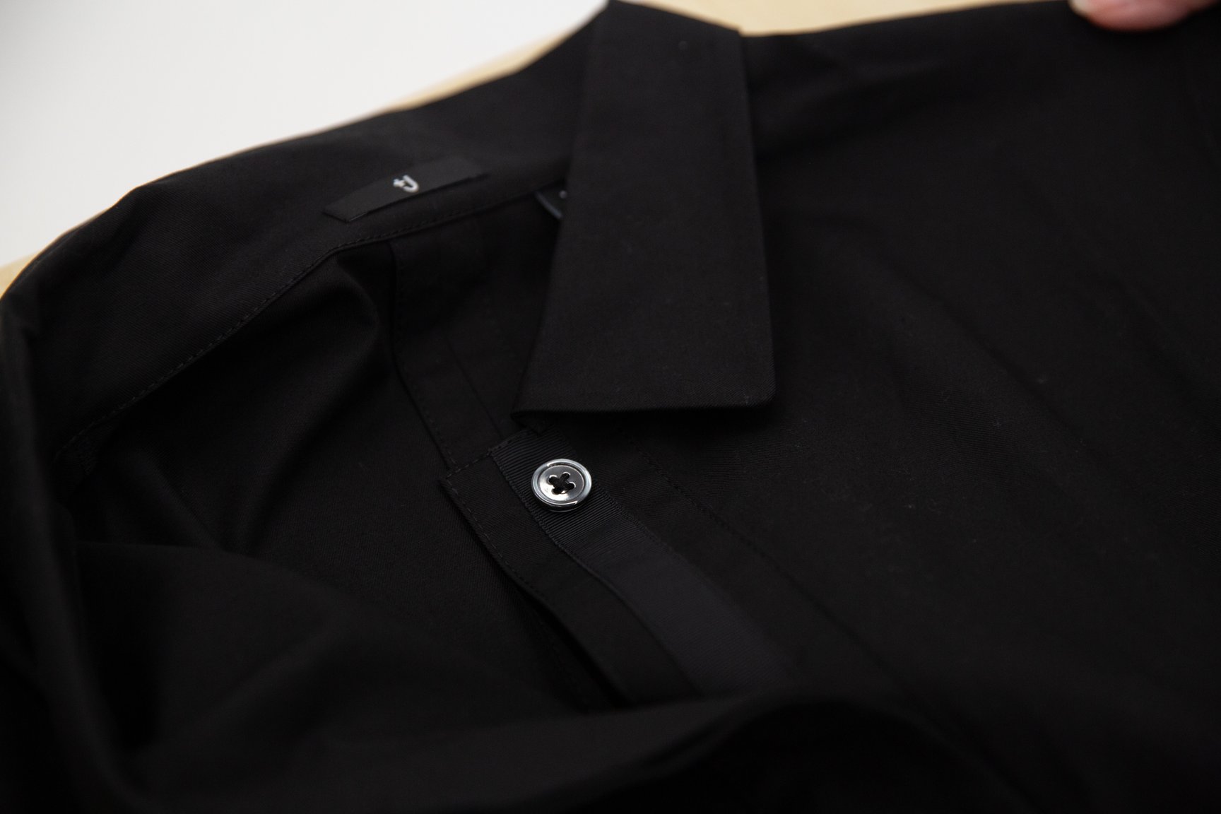 編集A:ハードめのブーツと合わせたいですね。そういえば先シーズン、ウィメンズのシャツワンピースをインターンの男の子が買っていて、コートみたいに羽織っているのを見かけたんですよ。ユニセックスで着用できるんだなと印象に残っていて。今回は秋冬と比べて、よりフェミニンなテイストを打ち出していますね。裾も綺麗なフレアが出ていますし。ブラックとダークグレーあたりはシーン問わず着れそうです。