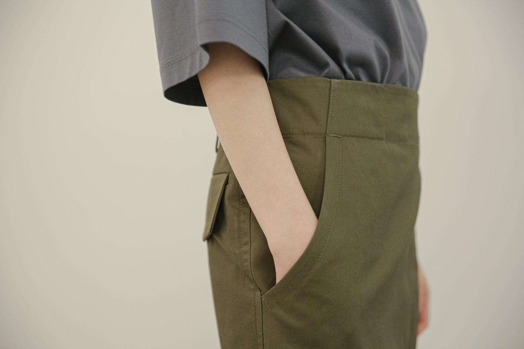 編集B:カーゴっぽい素材で、生地にハリがある。光沢もあってカジュアルすぎないのも好印象です。