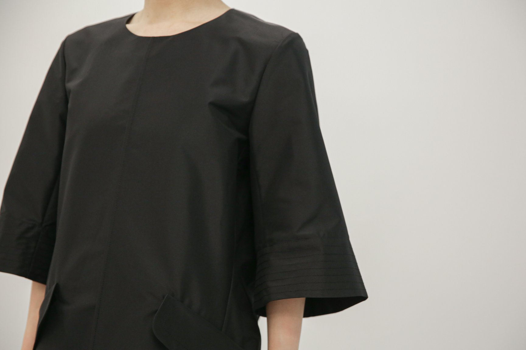 編集A:シルク37%、ポリエステル63%ブレンド素材を使ったワンピースです。シルクは後染めではなく、先染めしたのでこのハリ感を実現できてるんですね。