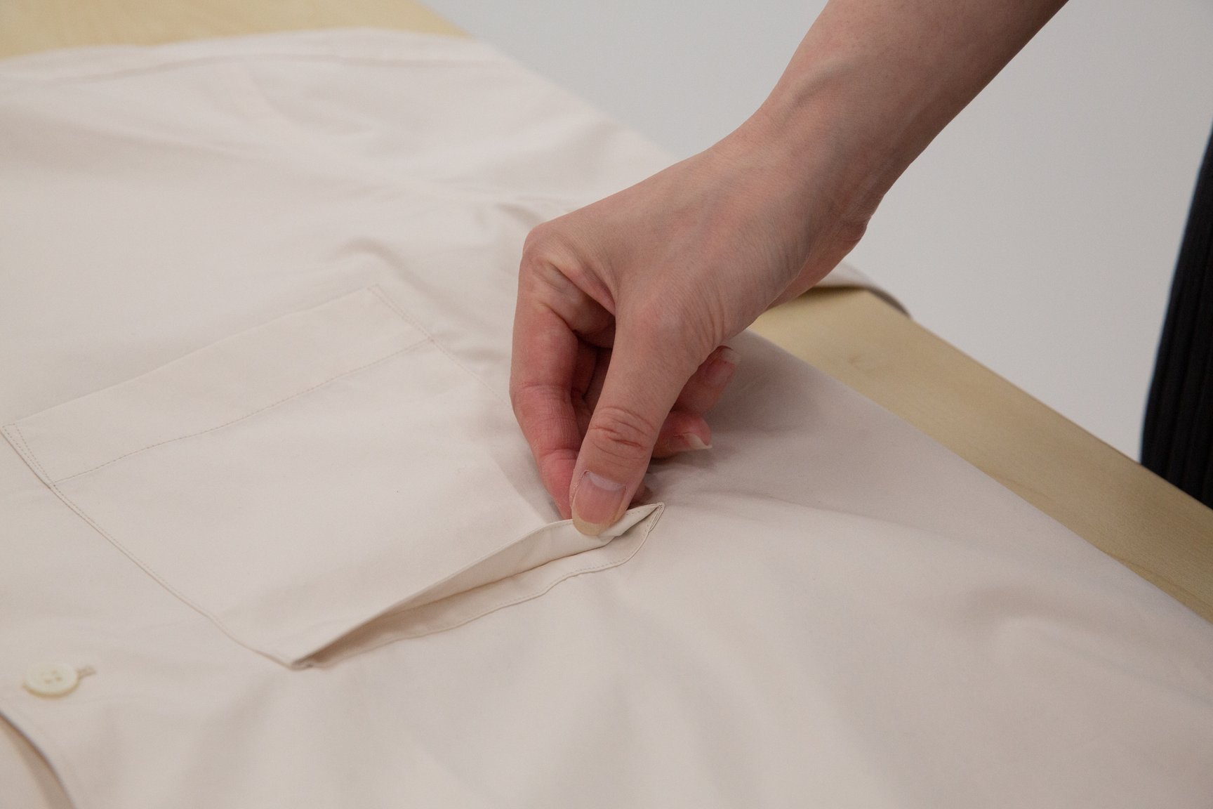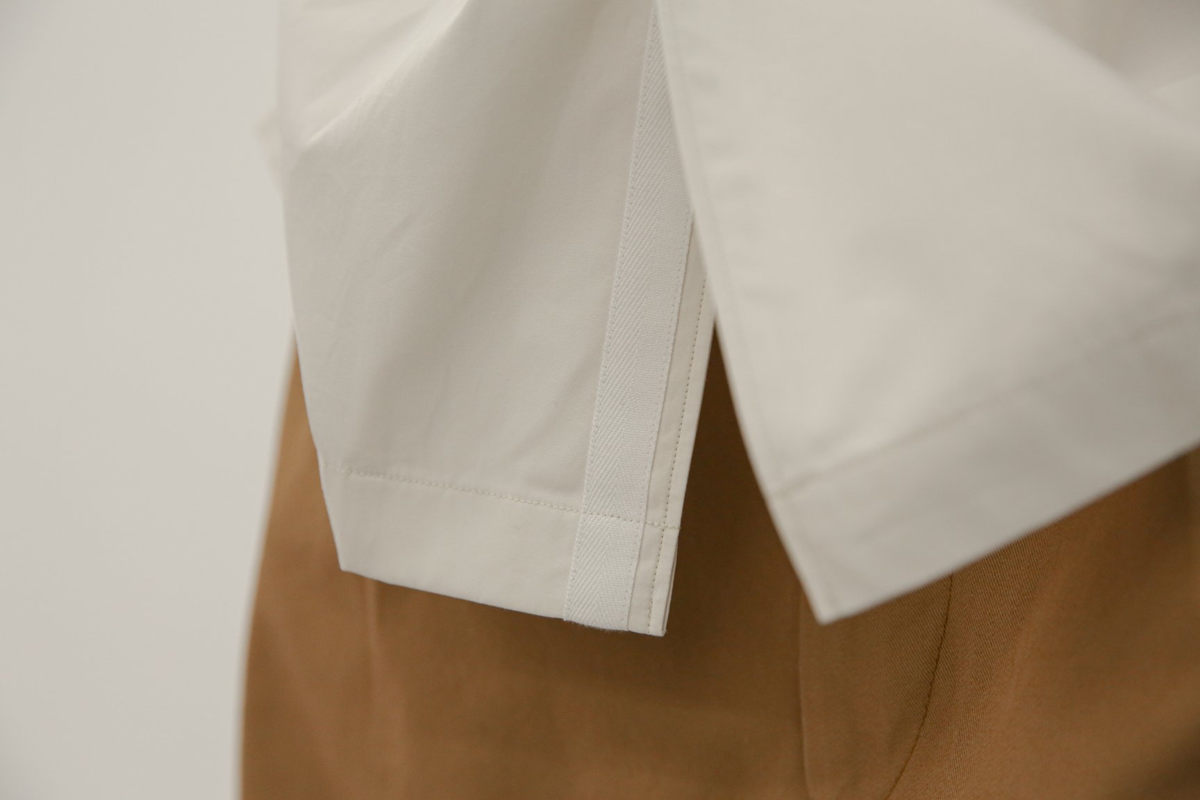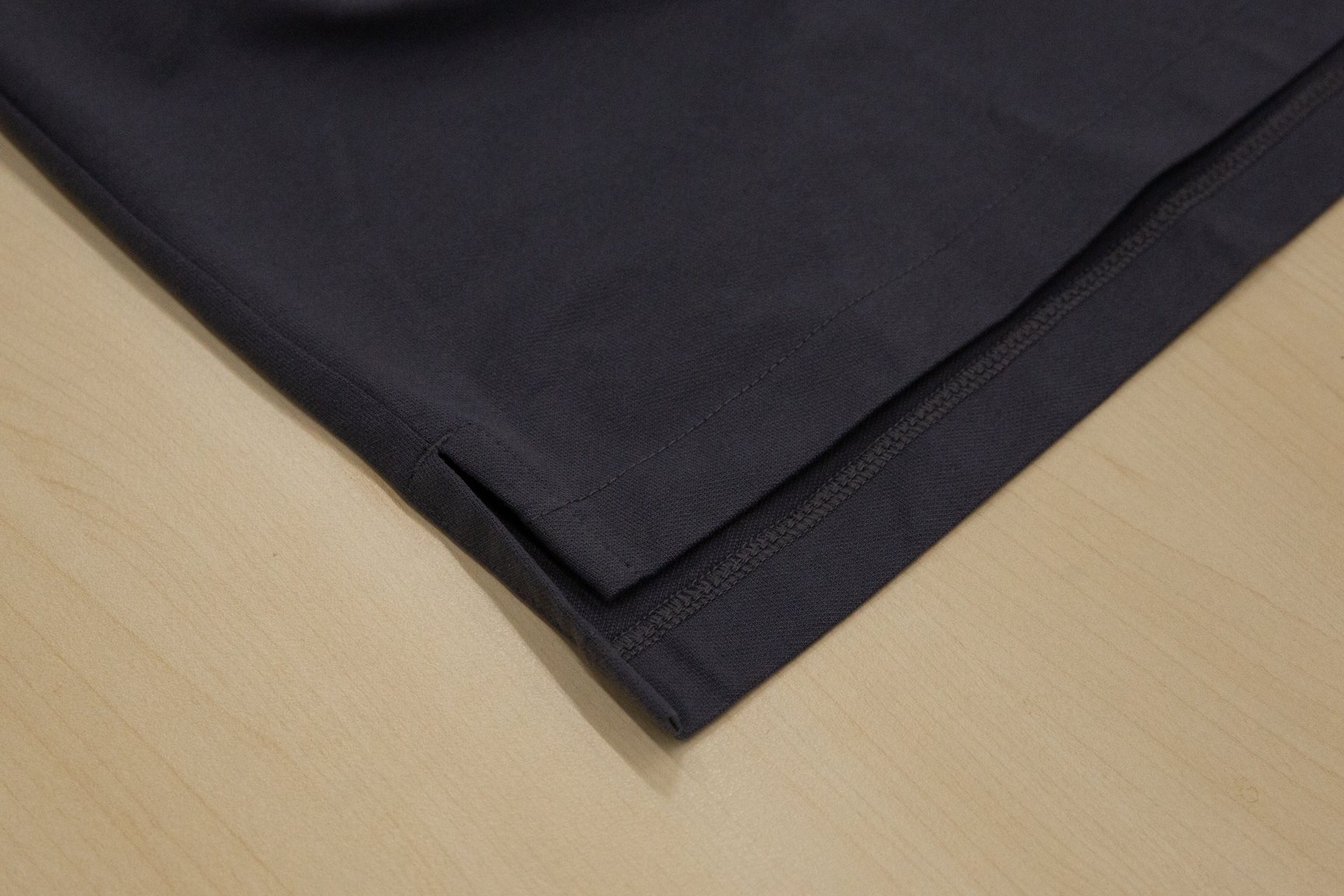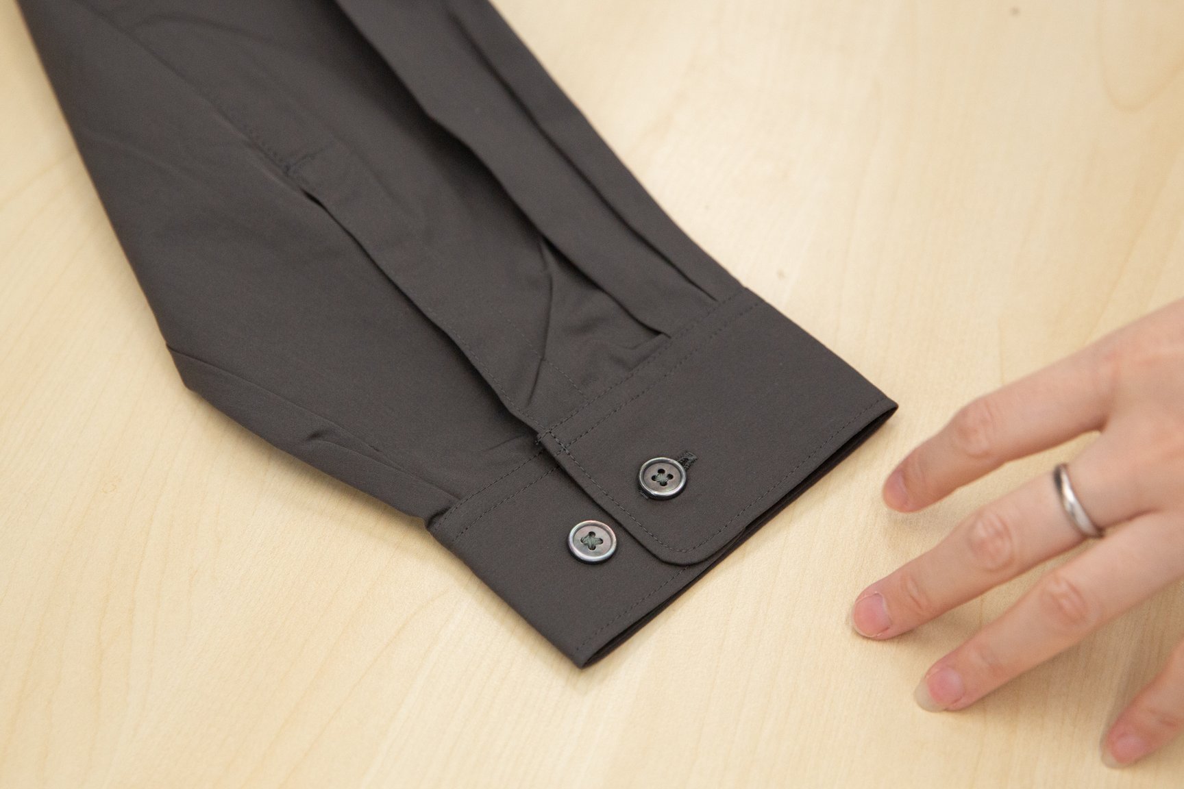 編集A:前立てが比翼仕立てなのでクリーンな印象です。前身頃よりも後ろ身頃の大きさを少し大きめにしていますね。