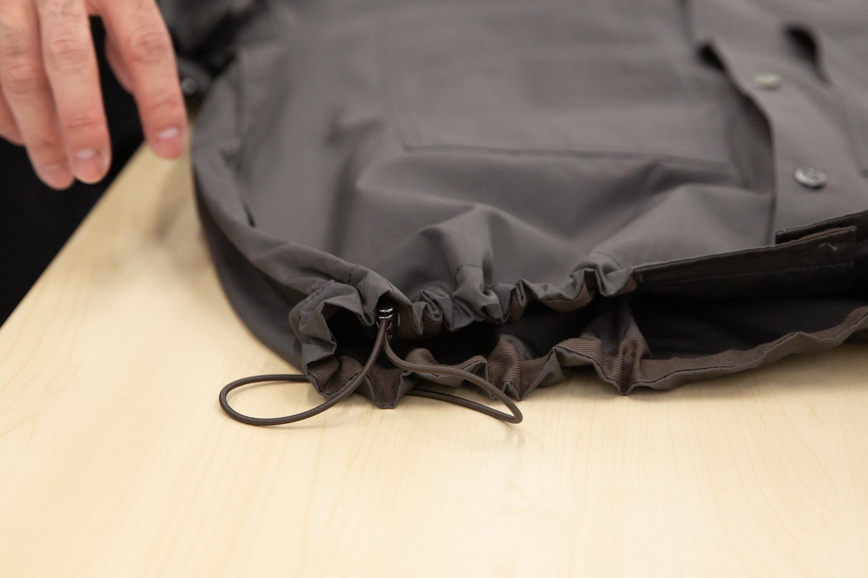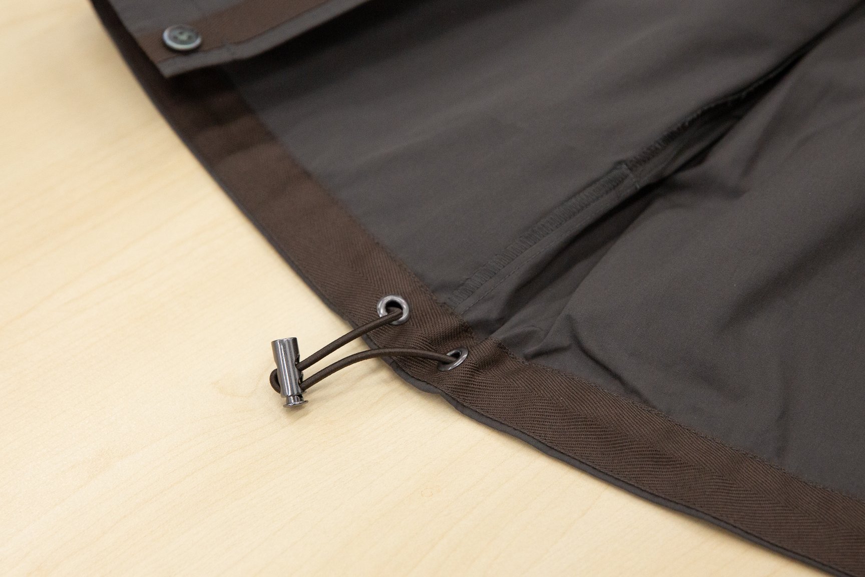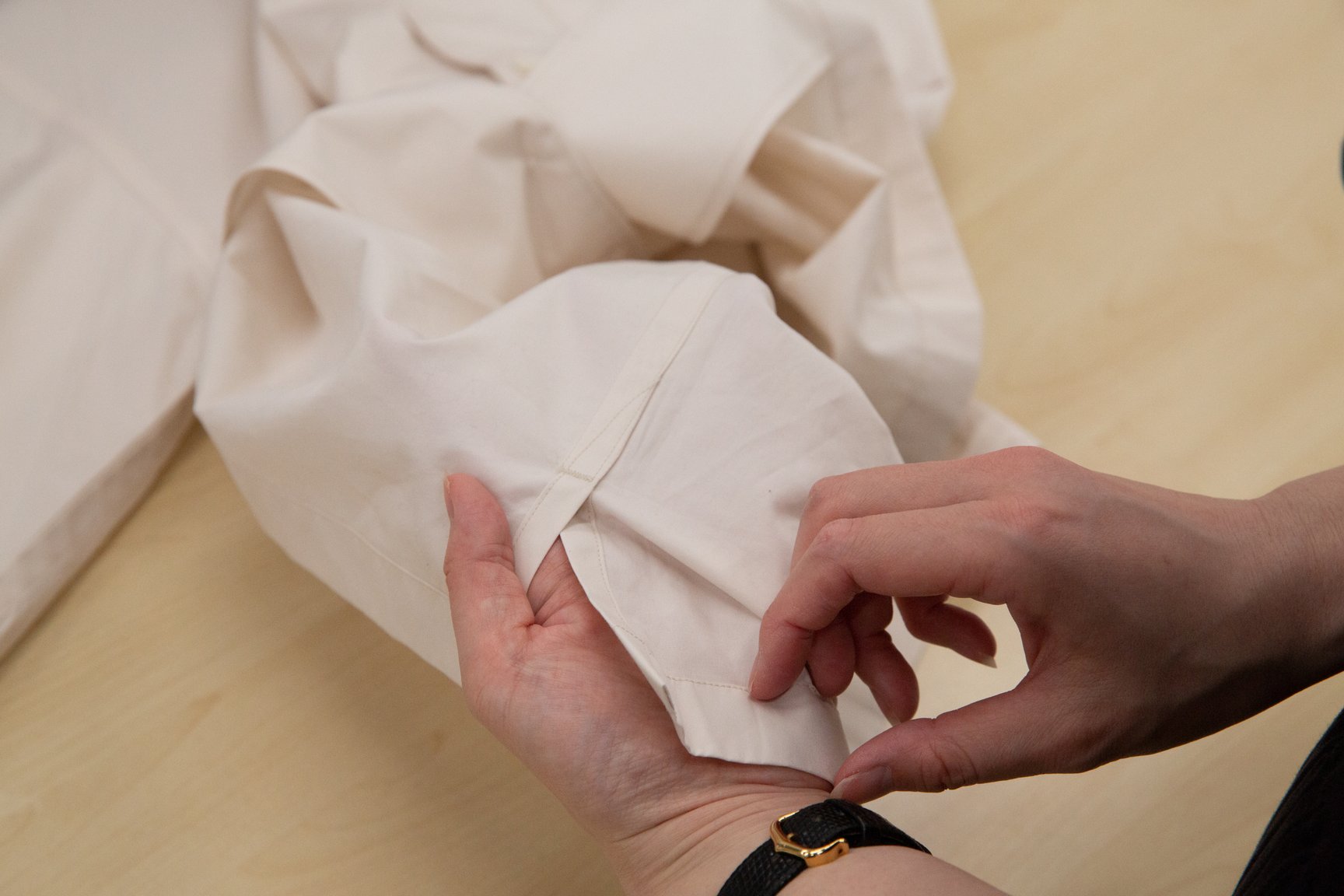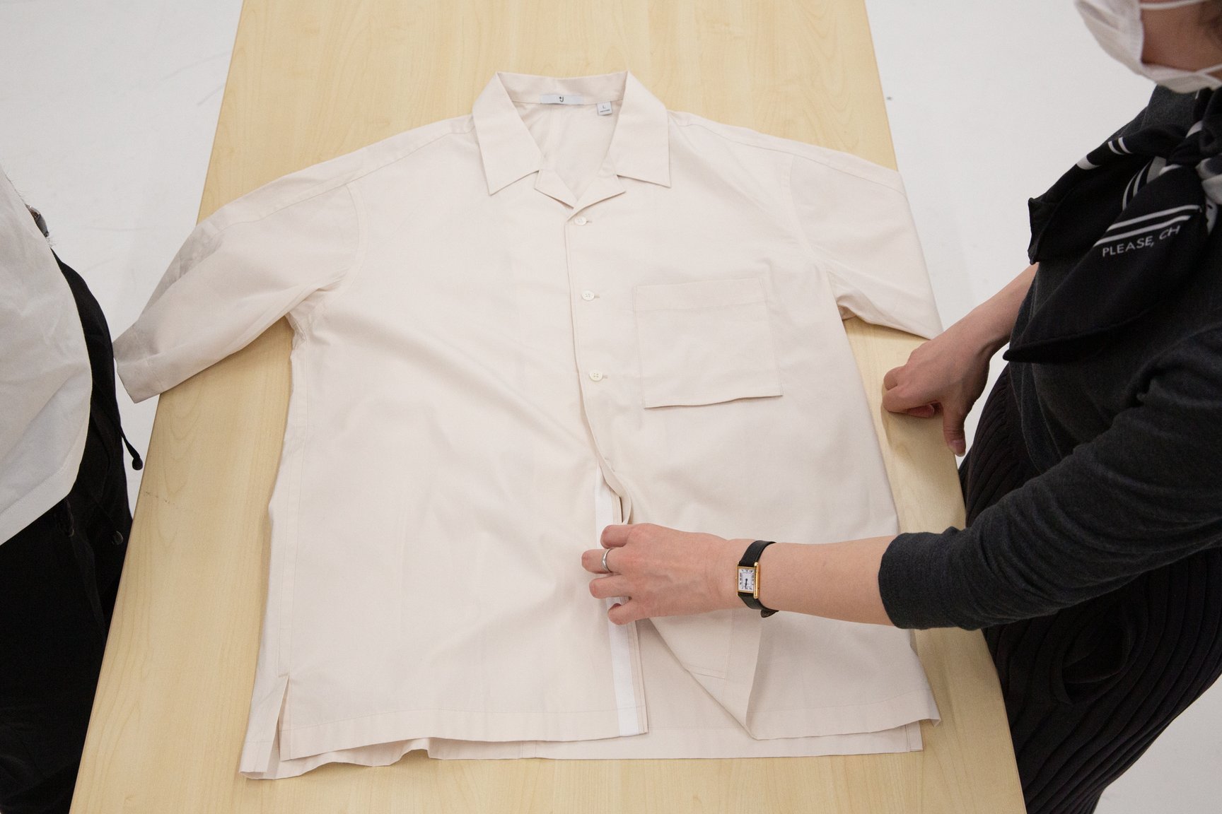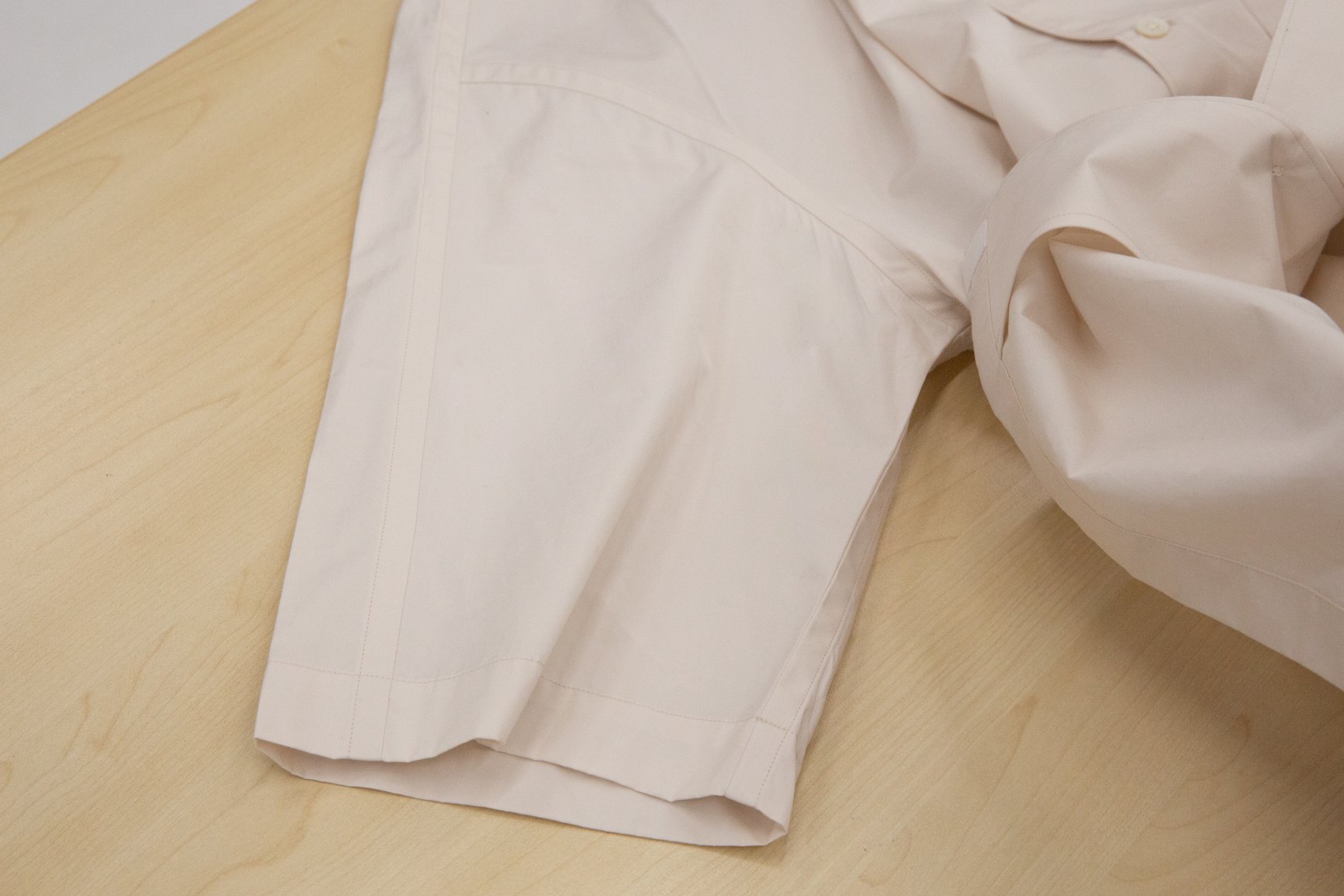 編集A:前立てが比翼仕立てなのでクリーンな印象です。前身頃よりも後ろ身頃の大きさを少し大きめにしていますね。