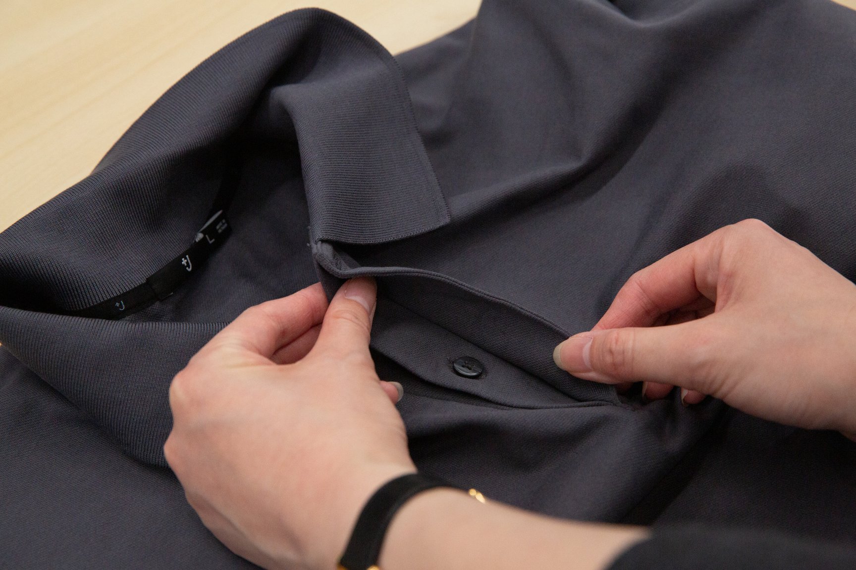 編集A:ユニクロ ユーで作っているポロシャツとの違いはなんだろう?ちょっと広めなんですかね。シルク混で、素材はドライな肌触りです。