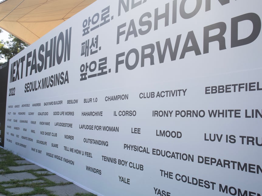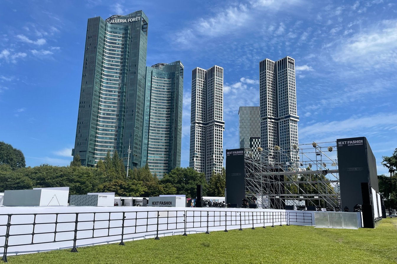 このソウルの森を会場に、今回ソウル市とMUSINSAがタッグを組んだ「NEXT FASHION 2022」が9月初旬、4日間にわたり開催。このイベントはMUSINSAで取り扱いのある55のブランドが集結し、ブースを出店したりショーやトークショーを行ったり、一般参加型のファッションイベントとして開催されました。