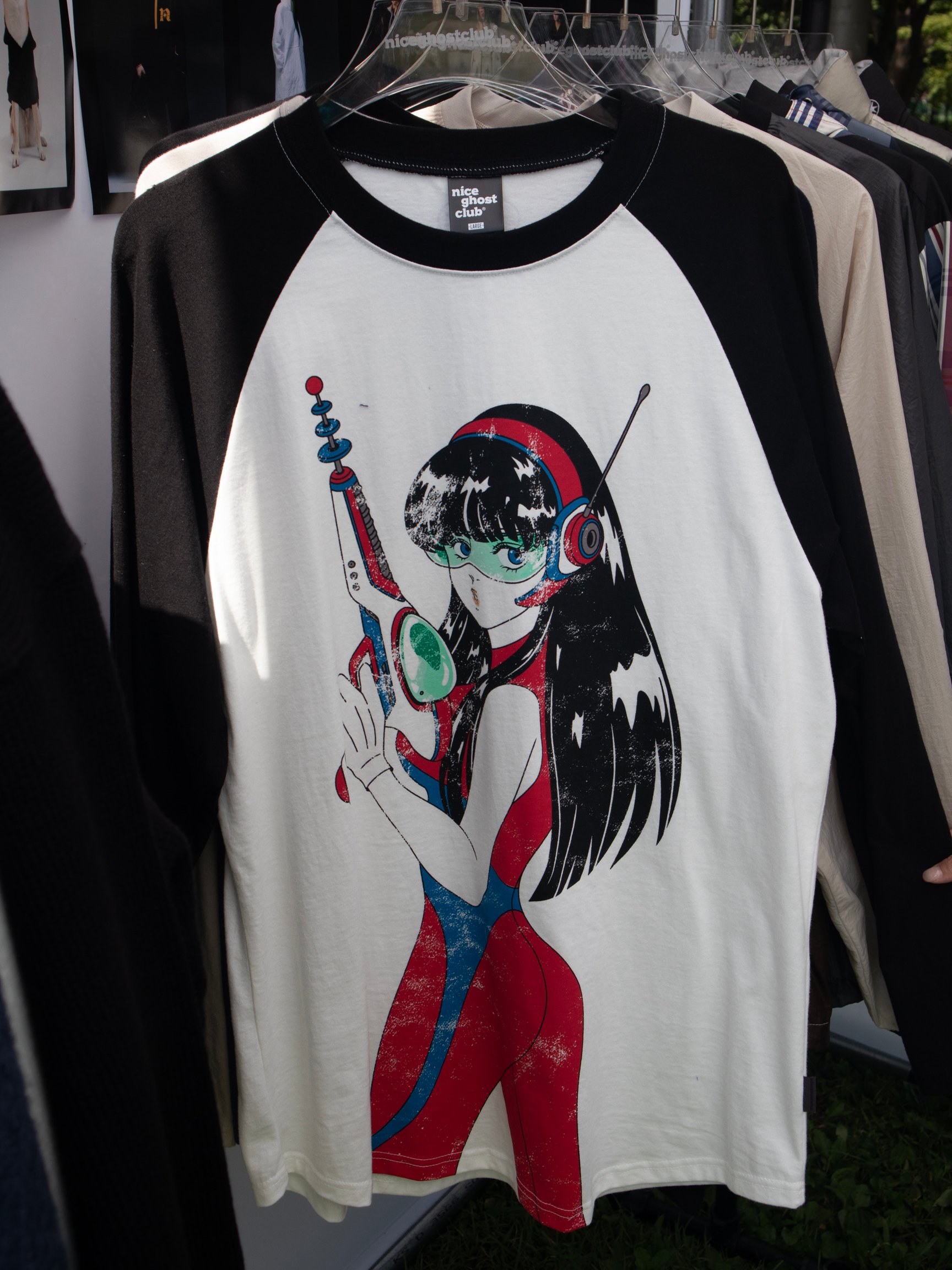 2020年にスタートした「ナイスゴーストクラブ(niceghostclub)」は、レトロなムードやY2K、映画、アニメといったサブカルチャーのエッセンスをプリントに落としたユニセックスブランド。Tシャツやフーディといったベーシックなウェアにキッチュなキャラモノがユニークです。これまでに発売したキャスパーや鬼滅の刃といったアニメコラボも人気だったのだとか。