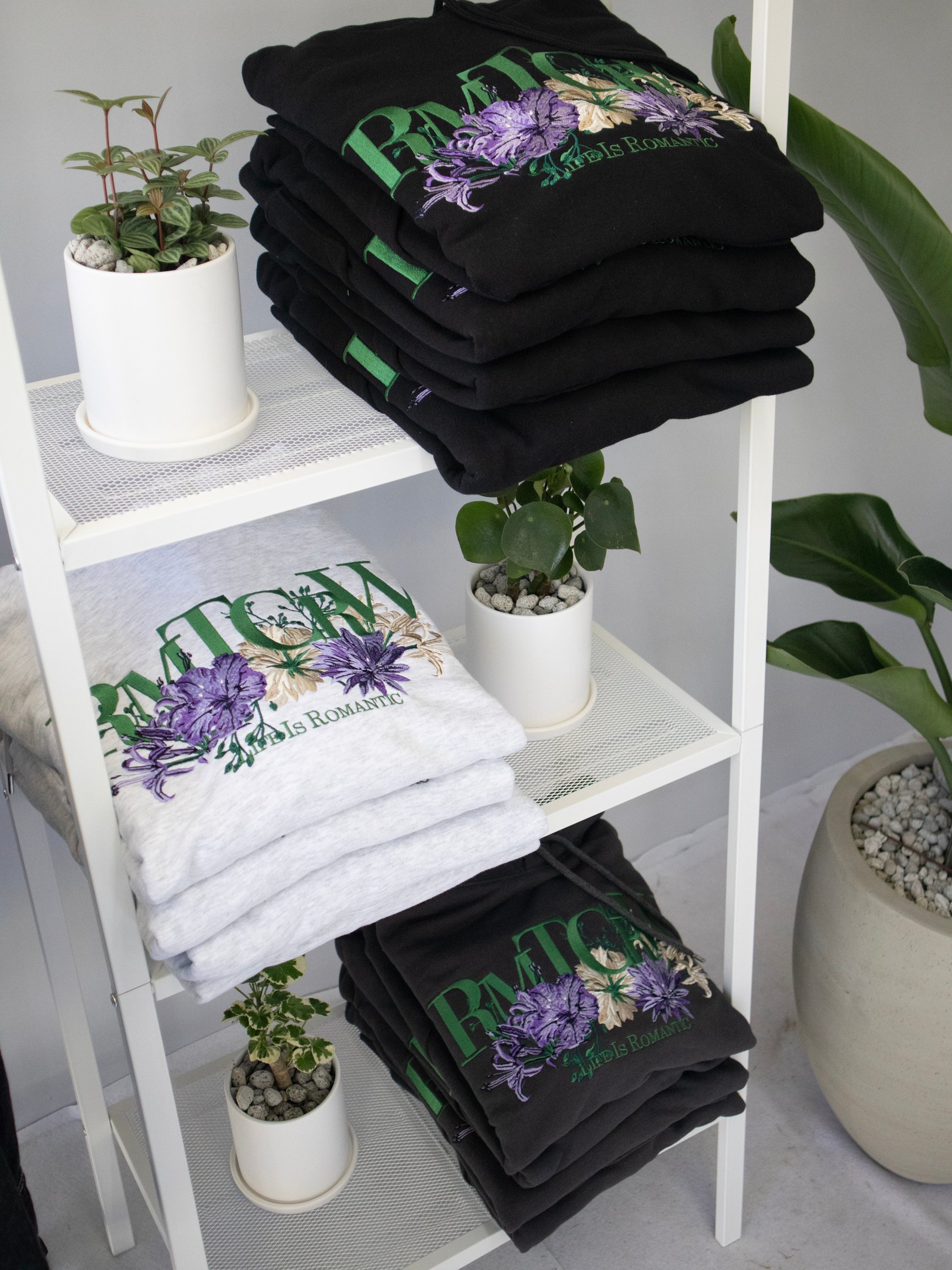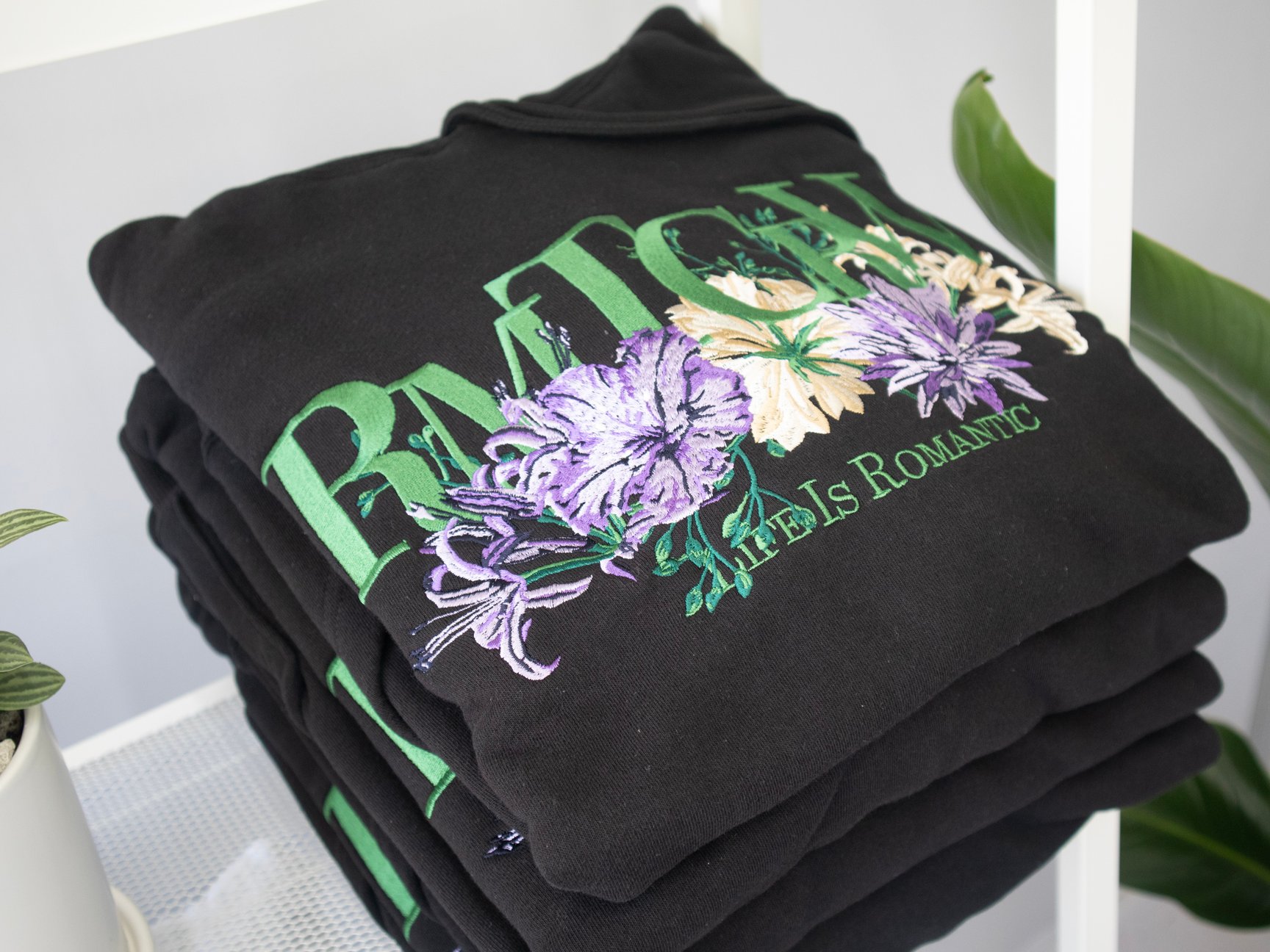 2009年に立ち上がった「ロマンティッククラウン(ROMANTIC CROWN)」は日本でも人気のブランド。頭文字の「RMTCRW」とトリコロールの刺繍がシグニチャーで、フードやシャツの胸元にワンポイントであしられています。K-POPアイドルからの支持も高く、BTSのJ-HOPEが「Yet To Come」のMVで被っていたキャップをはじめ、セブンティーンのウジもよくブランドの服を着ているところをキャッチされている模様。