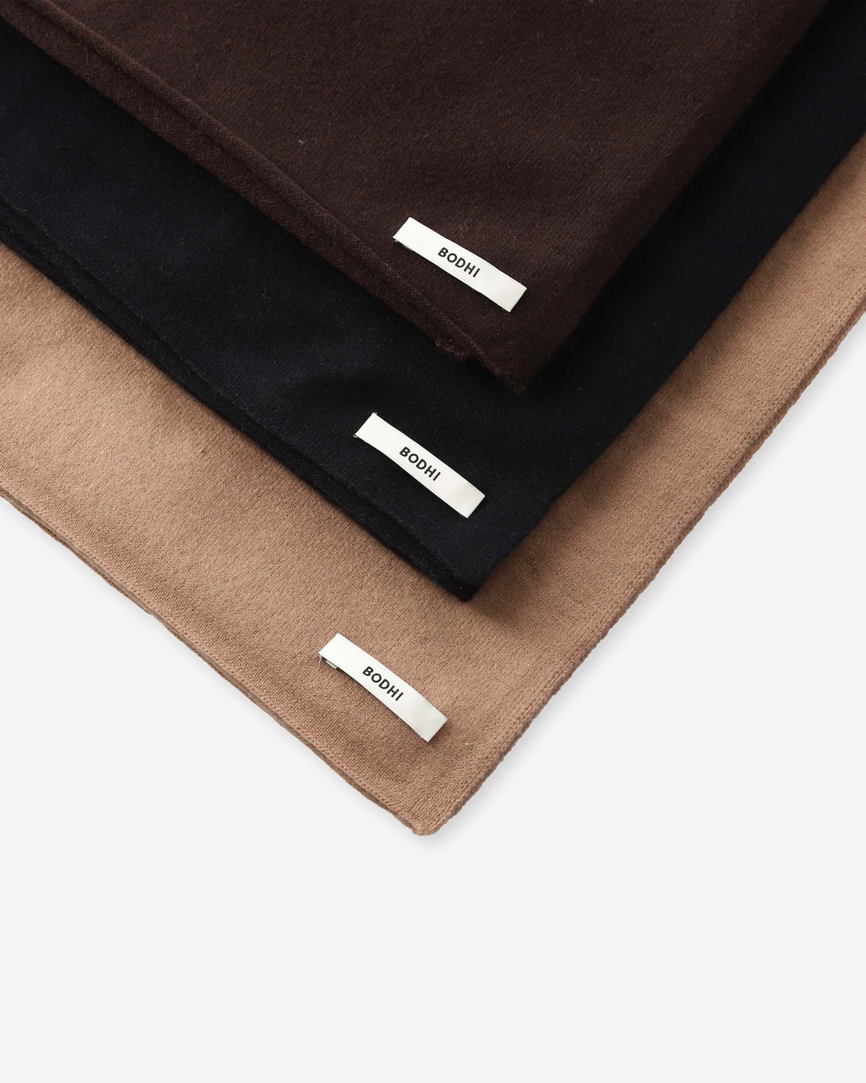 「繊維の宝石」とも呼ばれるカシミヤの中でも最高品質の内モンゴル産ホワイトカシミヤを使うことに拘ったユニセックスブランド「ボーディ」からは大判のストールをピックアップ。生後12ヶ月未満のカシミヤ仔山羊から初めて刈り取られる産毛だけを集め織り上げられているため、極上の肌触りに仕上がっており、ウール特有のチクチクが苦手な人でもストレスフリーで着用できるのは嬉しいポイント。格別な風合いと上品な光沢があるブラックカラーは、トレンドに左右されず飽きも来ないため長く愛用できること間違いなし。せっかく買うなら一生付き合える良いものを選びたいですね。F/STOREではスヌードタイプも用意しているので、普段のスタイルに合わせやすい方を是非選んでみては?