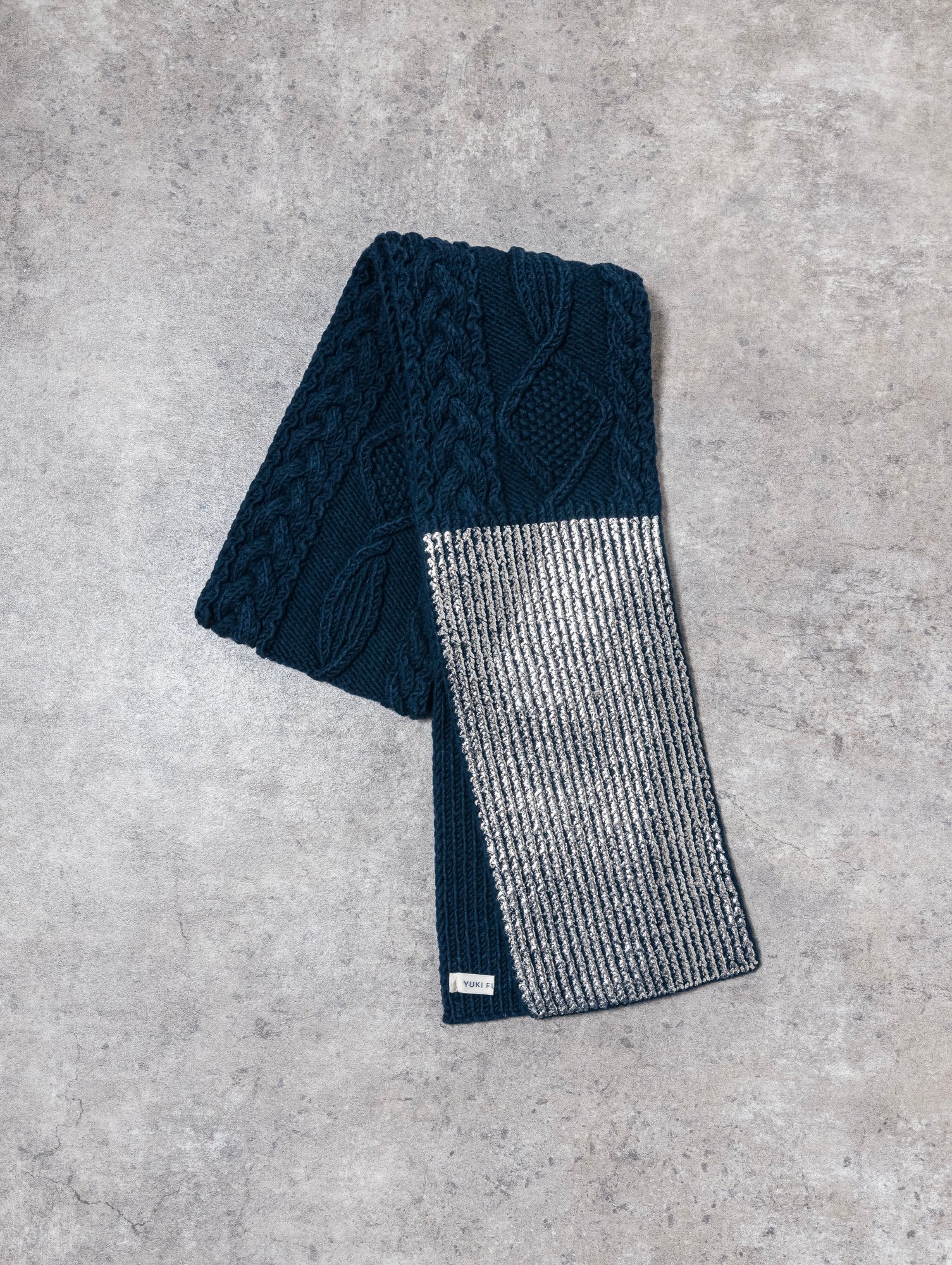 マフラーは片面だけに箔が載せられているため、長く垂らすと縦のアクセントになったり、二重に巻くと顔周りで箔が輝くことでハイライト効果が期待できたりと、コーディネートに合わせて様々な表情を見せることができます。ネイビーはユニセックスで使いやすいため、パートナーとシェアしながら使っても良さそう。ミトンやマフラーはブランドの公式ECとポップアップで即完売したという人気商品なので、お買い求めはお早めに!