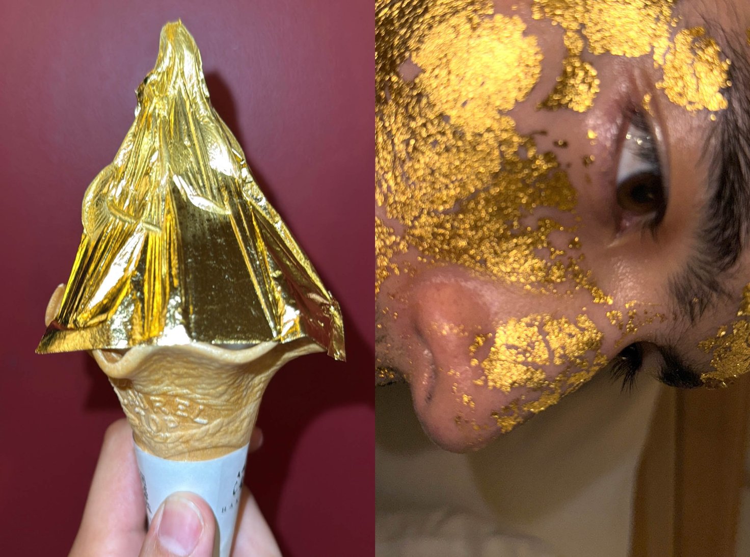 Sam's comment:金沢は金箔の生産で有名だから撮ってみた。金箔マスクを試したら、正直、肌が何日も輝いて見えたよ。金箔アイスクリームもかなりすごくて、唇がメタリックになったんだ!