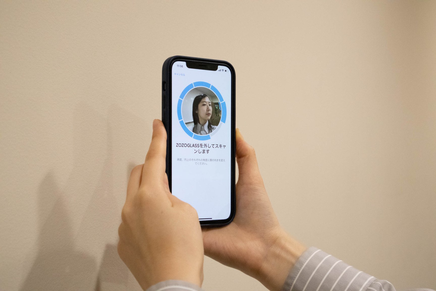 続いてゾゾグラスを外して撮影します。先ほどと同様に上下左右と斜めの8方向から顔を撮影します。なんとこれだけで計測が終了。ここまで3分もかかりませんでしたが、慣れれば1分程度で撮影できるとのこと。