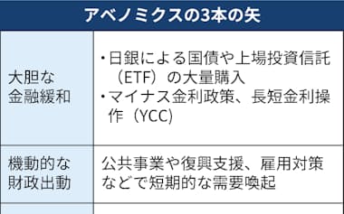 ①大胆な金融緩和②機動的な財政出動③民間投資を喚起する成長戦略――を「3本の矢」として掲げた。日銀の黒田東彦総裁(当時)は2年程度で2%の物価上昇率を目標として…