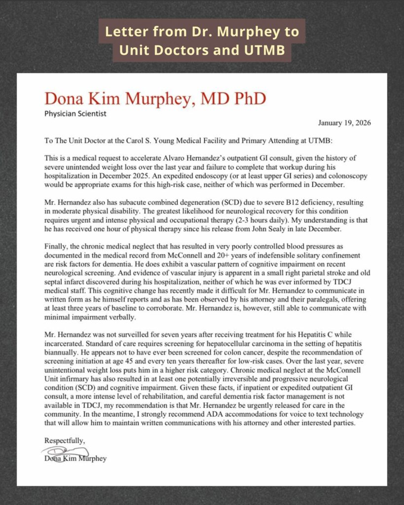 In the past couple of weeks we have gotten a more complete picture of the severity of Xinachtli’s medical conditions and the state’s medical abuse. We have learned through newly obtained medical records that he is at a risk of cancer, given his sudden weight loss and lack of proper screening, that he previously suffered from a stroke, has a heart condition, at least one chronic irreversible neurological condition, a hernia, and more.