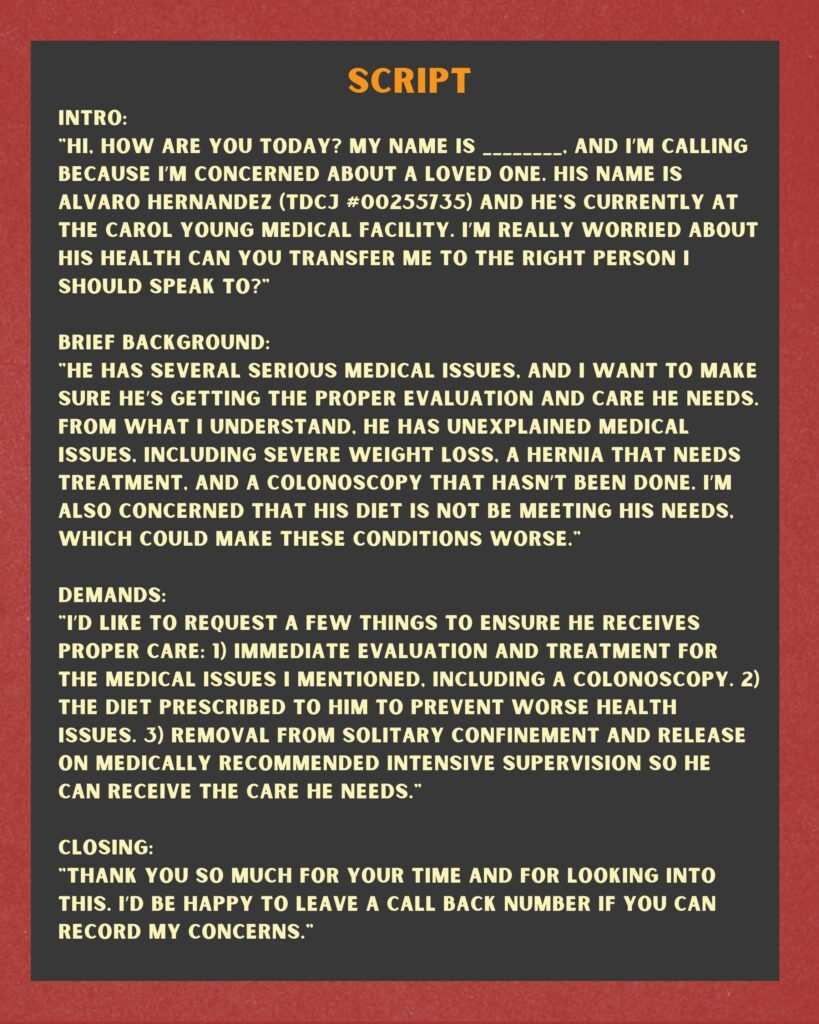 It’s up to us to keep up the pressure to meet his demands, primarily to restore his access to water and commissary. TDCJ has begged campaign organizers to stop the onslaught of call, so we must show them that there will be no rest and no peace for them until Xinachtli is FREE!
