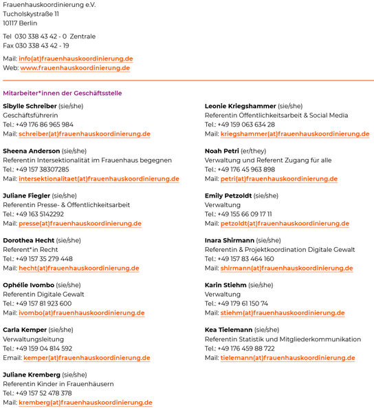 Z.B. Sybille Schreiber „Bereits in ihrer vorherigen Tätigkeit als Landesgeschäftsführerin von pro familia Berlin e.V. hat sich Sibylle Schreiber der Selbstbestimmung von Frauen und Mädchen gewidmet. […] – Frau kommt nicht ohne Netzwerk und entsprechende feministische Einstellung in diese Position.
