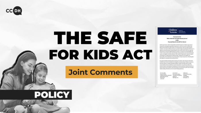 CCDH joined Children and Screens and ParentsTogether to file comments on the SAFE for Kids Act, legislation which aims to protect kids online.