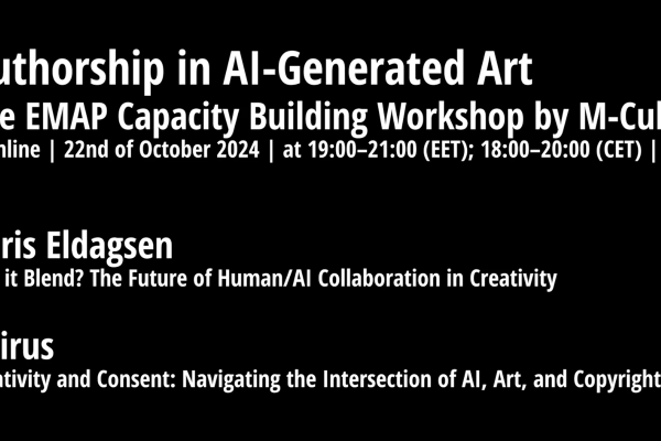 Pioneering AI artist-philosopher Boris Eldagsen and Austrian-Finnish artist-researcher duo Kairus will engage in a deep reflection on the issues artists dealing with digital material are facing in creative, ethical and legal processes with AI tools. Workshop is programmed by M-Cult’s producer and EMAP residency coordinator Mia Mäkelä.