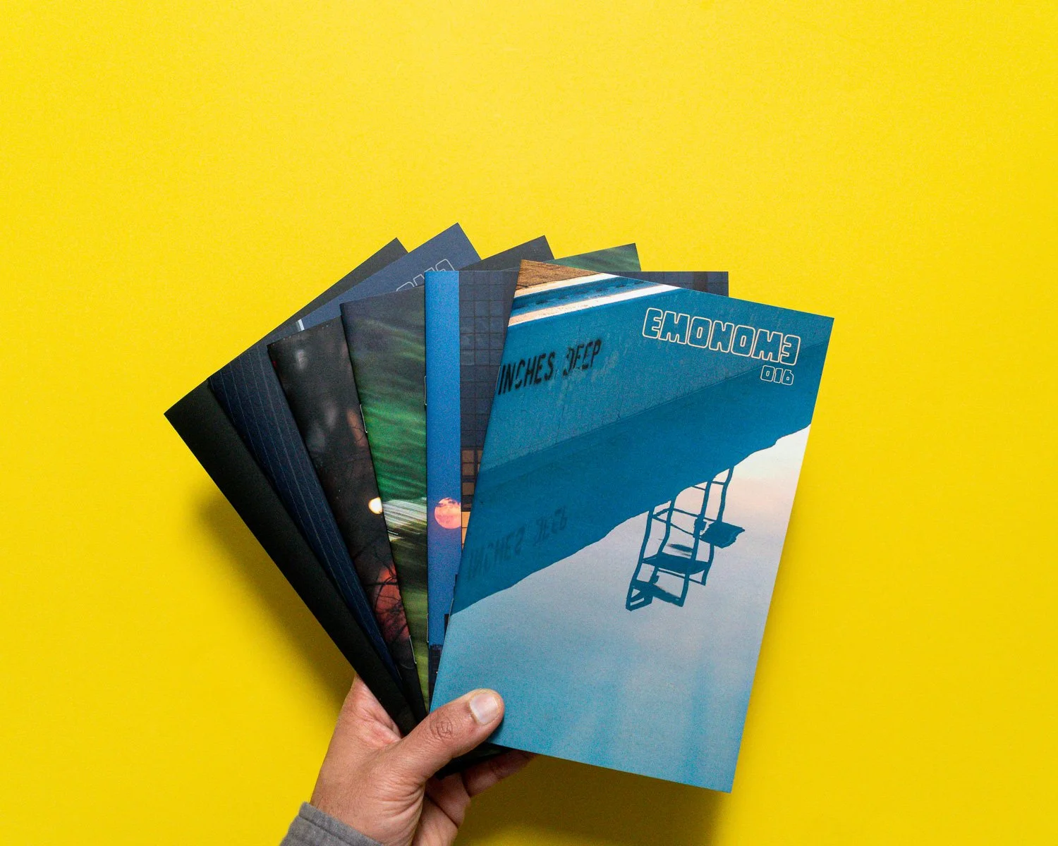 emonome is a print-only, monthly photo zine. Each 40-page issue weaves together my photographs with the occasional short fiction, poetry, illustration, and collage to explore a universal theme that shapes us as artists.