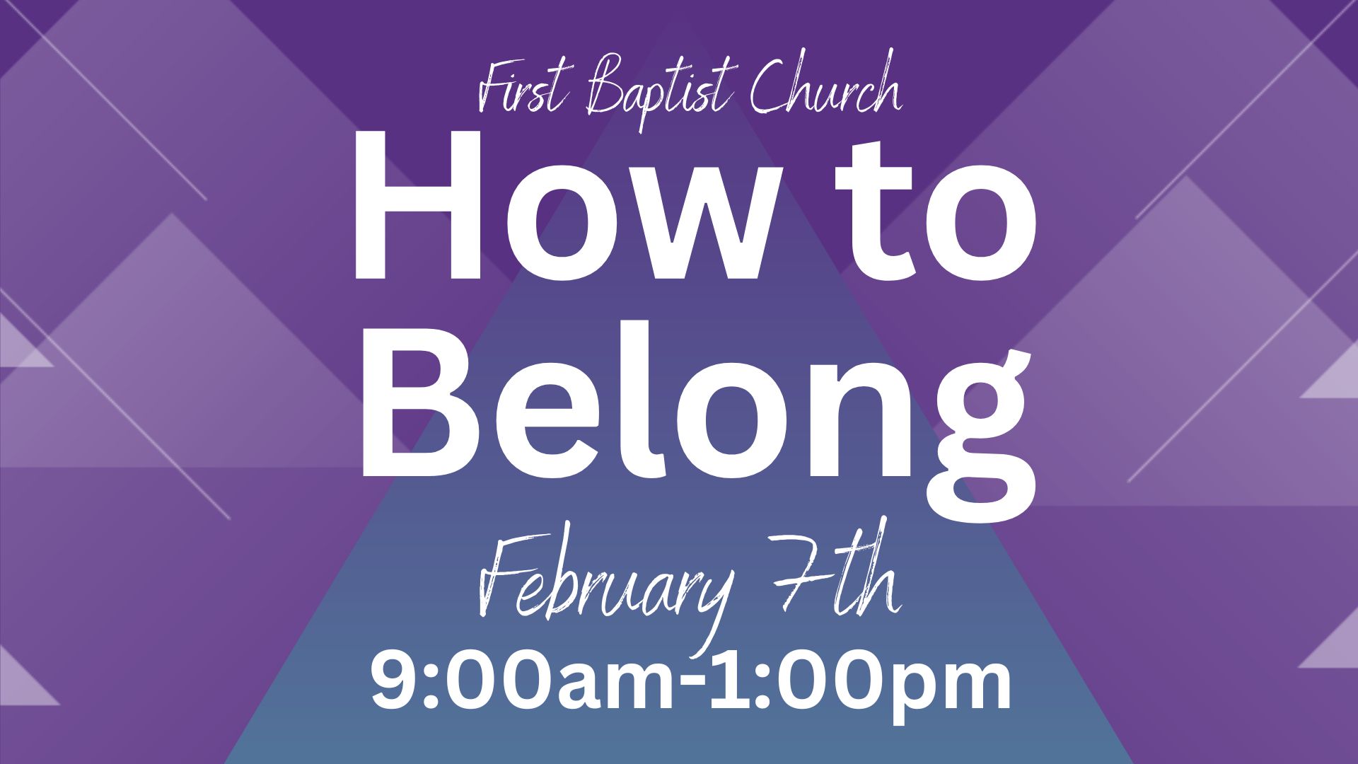 Our How to Belong membership class held on Saturday, February 7th in the parlor room, with refreshments during the event and a meal provided afterwards. You’ll be able to ask questions and come away knowing our church structure as well as how we function in community as the body of Christ through biblical beliefs and practical steps. |