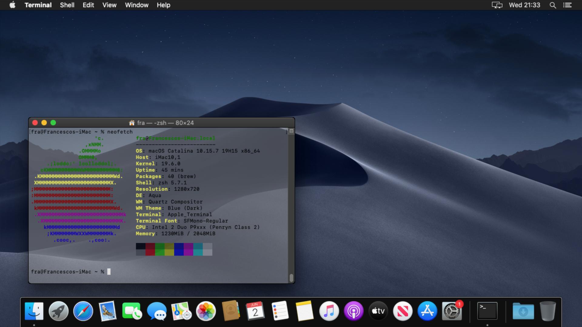 - Minimally configured zsh shell with custom plugins, completions and prompt (old p10k themes here). For syntax highlighting, I use fsh; startup time is around 35 ms.