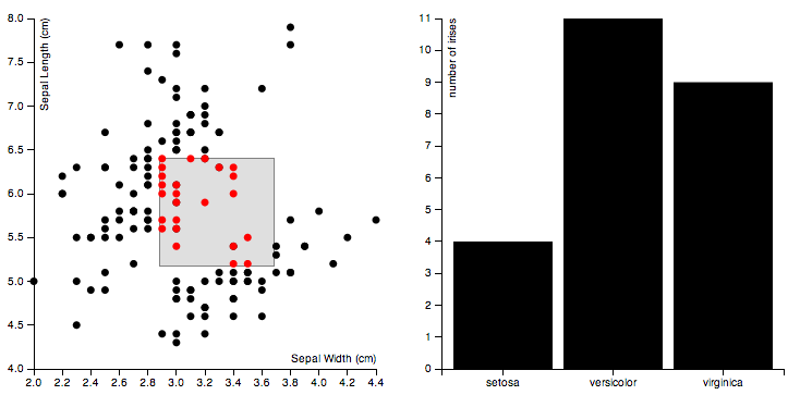Multiple reactive visualizations can be combined together to form visualization dashboards with multiple linked views. For example, take a look at the linked views example, which looks like this: