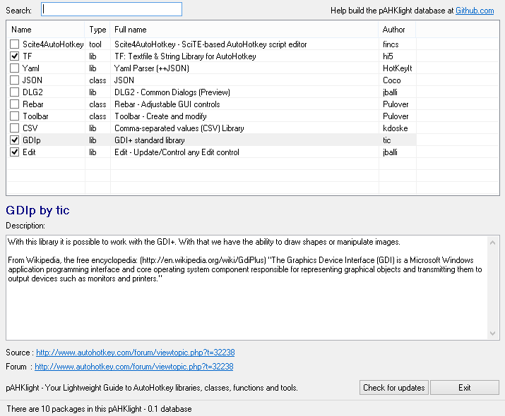 As a reminder (for yourself) you can tick the checkbox in front of a package if you use it. It will remember that for the next time you start pAHKlight so you can quickly see which package(s) you are already using.