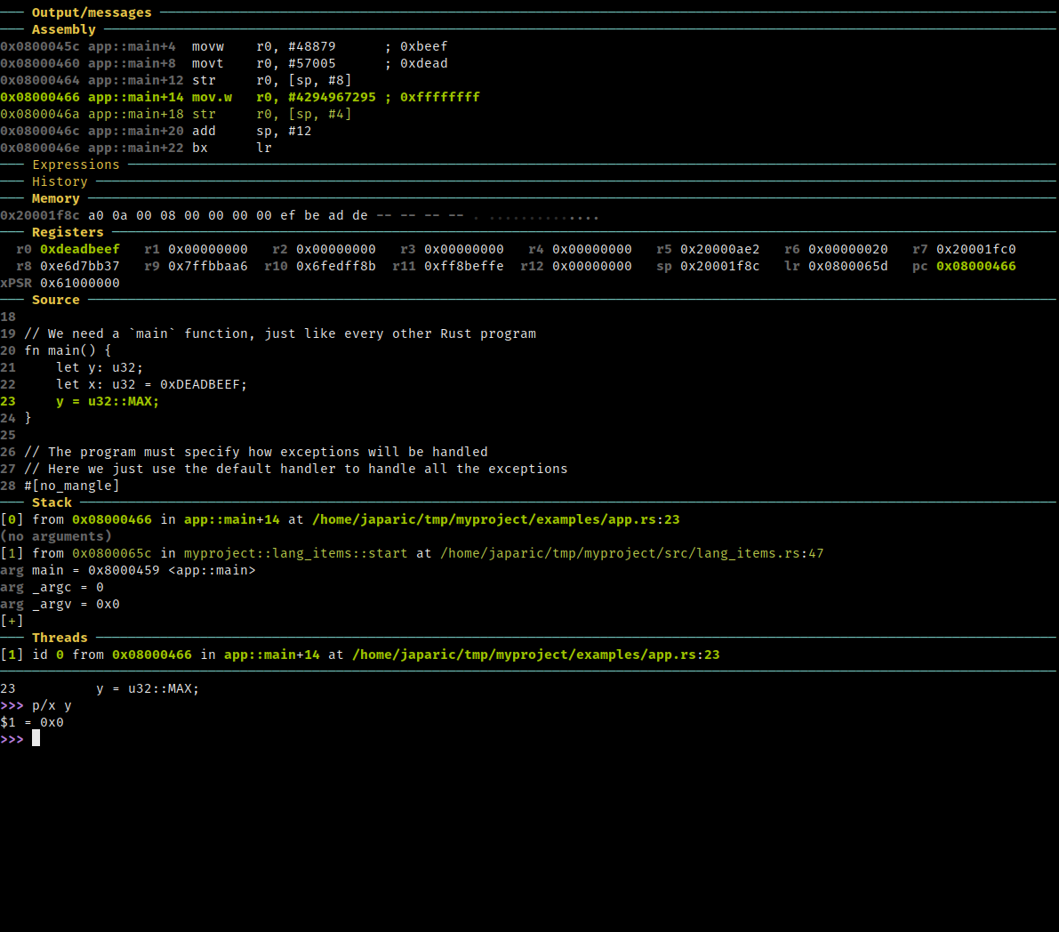 $ arm-none-eabi-objdump -Cd target/$TARGET/debug/app