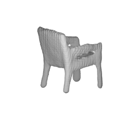 visualize('../../output/chair_1.mat', 0, 2, 0.03, 'chair_1')The code will visualize the shape in 2 different views. The visualization might take a while. Please change the step parameter if it is too slow.