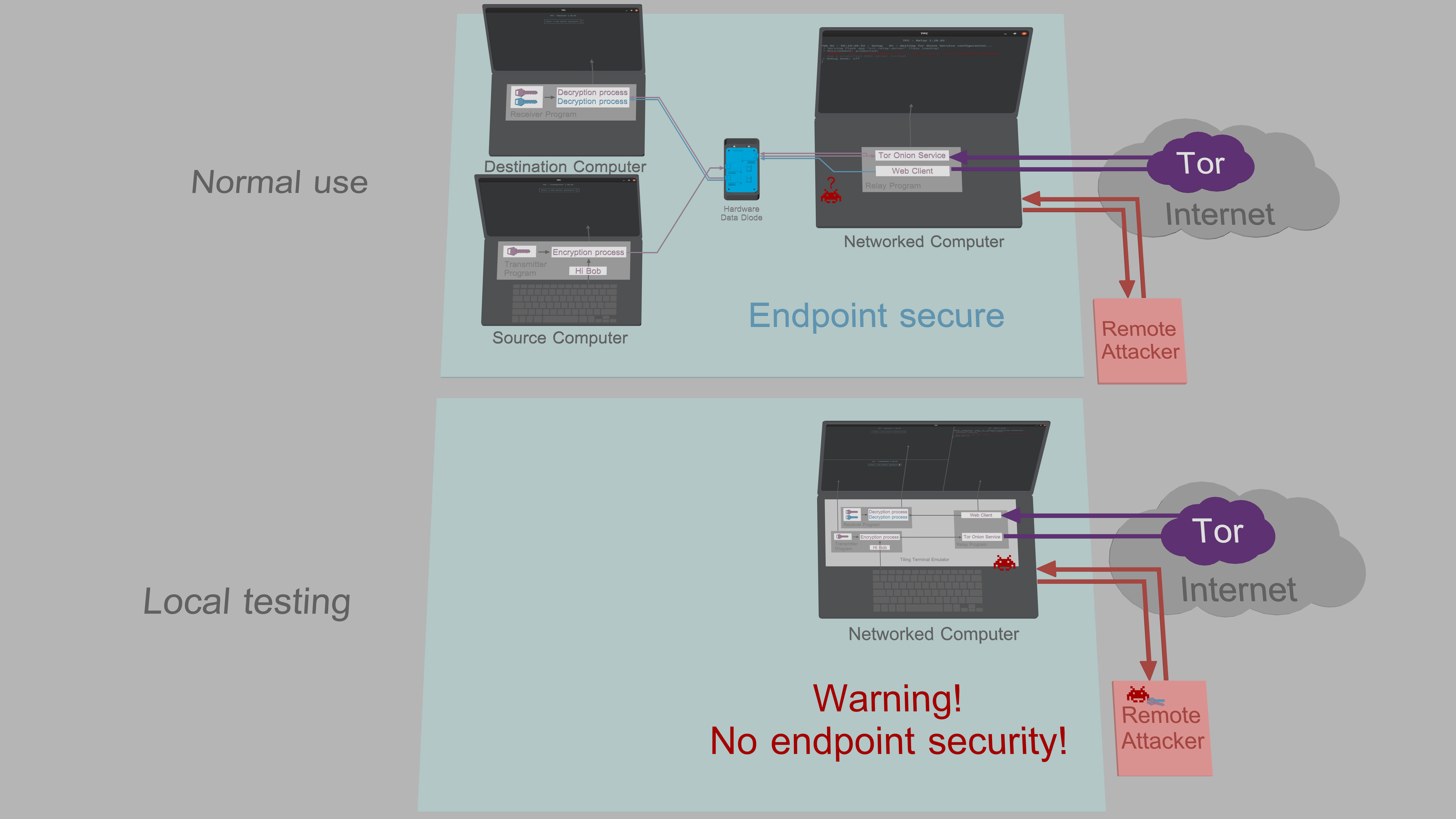 - If the Networked VM running the Relay Program and the hypervisor are compromised with a chain of exploits where one allows VM escape, the endpoint security of the entire host OS will fail catastrophically.