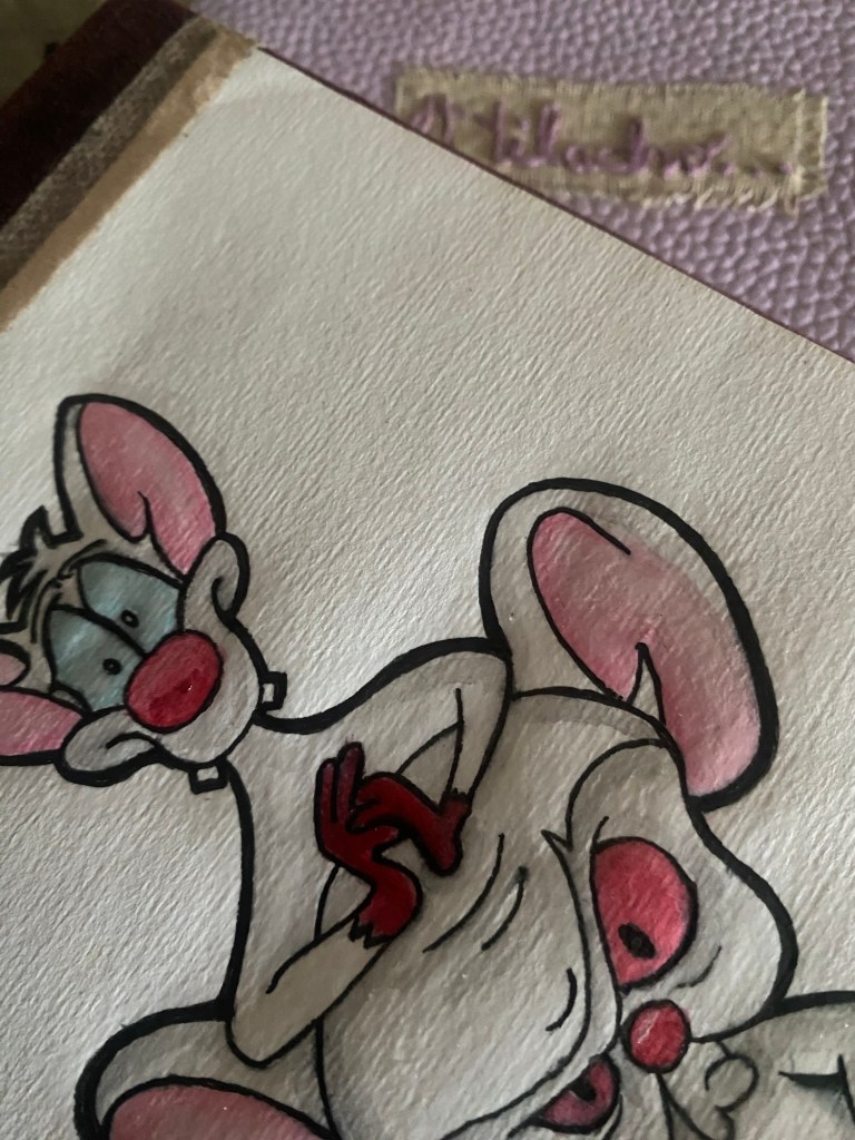 Foto: Hilacho | Dibujo en acuarela de Pinky y cerebro, portada de cuaderno.