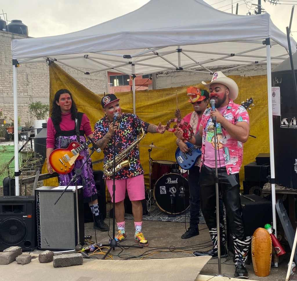 Aquella banda que estaba amenizando la apertura resplandecían con sus maquillajes y trajes de payaso. Así es eran los Payachangos Regañados. Con una mezcla de rosado, máscaras y narices rojas disfrutamos del divertido estilo de hacer ska.