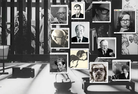 Maria: That's lovely! I'm a penguin! Where did you get the graphic? Momus: It's a tribute to the Japanese designer Nakajo Masayoshi, a cluster of some of his motifs. He did a lot of work for the Shiseido magazine Hanatsubaki, really nice clear and simple design, but quirky, with lots of personality. Maria: Is that you in the photo? Momus: No, it's Harry Smith, but it's how I might look in a few years. Maria: You have a birthday coming up soon, don't you? Momus: No. Maria: Yes you do! Momus: No I don't! I don't want to talk about that! In fact, let's just end this meeting now, shall we, Maria? Maria: Okay, you're the boss, Mr Branson! I mean, Mr Momus!