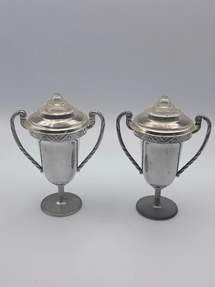 Vintage Plastic Trophy Style Salt and Pepper Shaker With Clear Lid