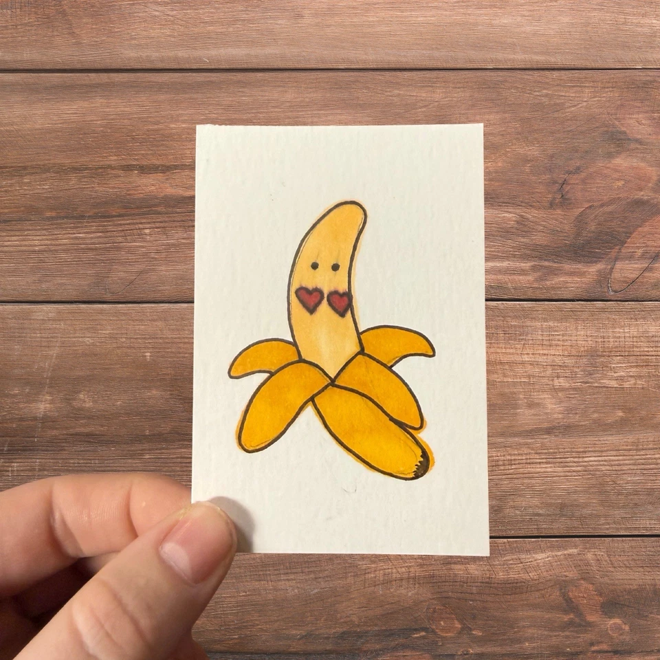 ACEO Original Art Artist Trading Card Hand Drawn Mixed Media Valentine Fruit #3