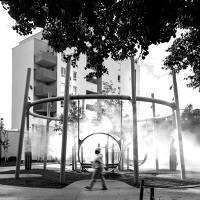 Le studio a développé la « traverse ludique » et la « balancelle des brumes » à partir du projet urbain des paysagistes de l’Atelier Roberta :