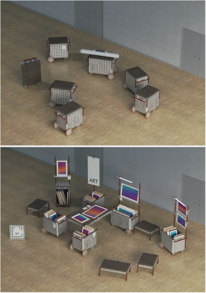 Lauréats ! Notre proposition d'artothèque mobile a été retenue par le CNAP (Centre National des Arts Plastiques) comme modèle de référence pour le plan artothèque du ministère de la Culture. Une série de 20 à 40 exemplaires de ces mobiliers seront produits localement pour les artothèques partout en France.