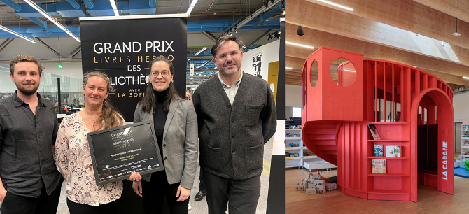 L'Échappée, la ludo-médiathèque de Herblay sur Seine, vient de recevoir le Grand Prix des Bibliothèques dans la catégorie "espace Intérieur", ce prix est organisé depuis 15 ans par la revue des métiers du livre "Livres Hebdo", il a été remis à la BPI (Bibliothèque du Centre Pompidou) Mardi 15 Oct.