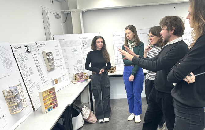 Jury à l'ESAD Valenciennes : les étudiants de 3eme année ont étudié la micro-architecture et la pré-fabrication en participant au concours Minimaousse dans le cadre de l'atelier de projet en design. Critique invitée : Claire Lapassat de l'Atelier Universel. qui a notamment travaillé sur l'industrialisation dans la construction.