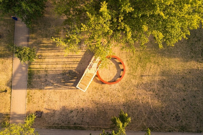 The project "Mazzocchio : a social zone", is a temporary installation in public space. It has just been completed for a festival in Csorompuszta, Hungary. This project is part of the Hello Wood 2015 Festival/workshop.