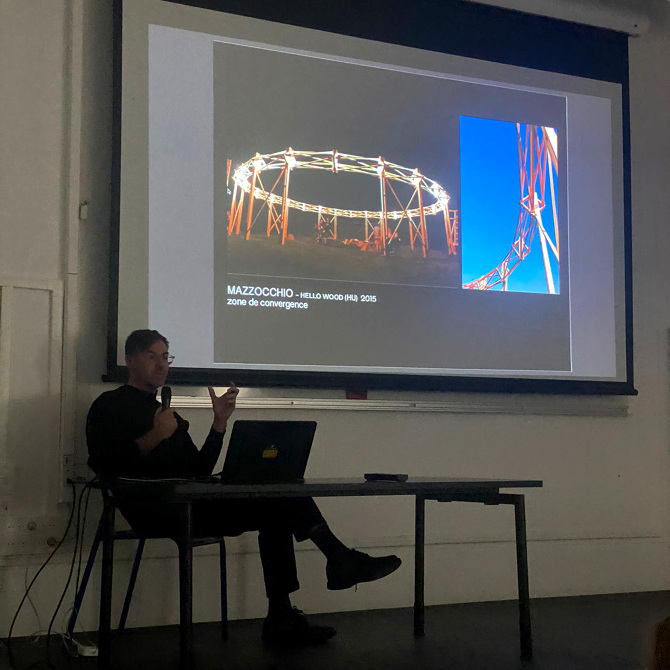 Martial Marquet a présenté les projets du studio lors d'une conférence auprès des 140 étudiant.e.s de 1ère année de l'École Spécial d'Architecture à Paris, à l'invitation de Marco Lavit, et Alexandre Schrepfer enseignants en projet d'architecture.