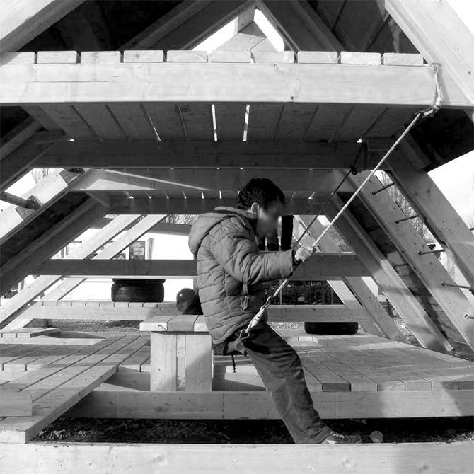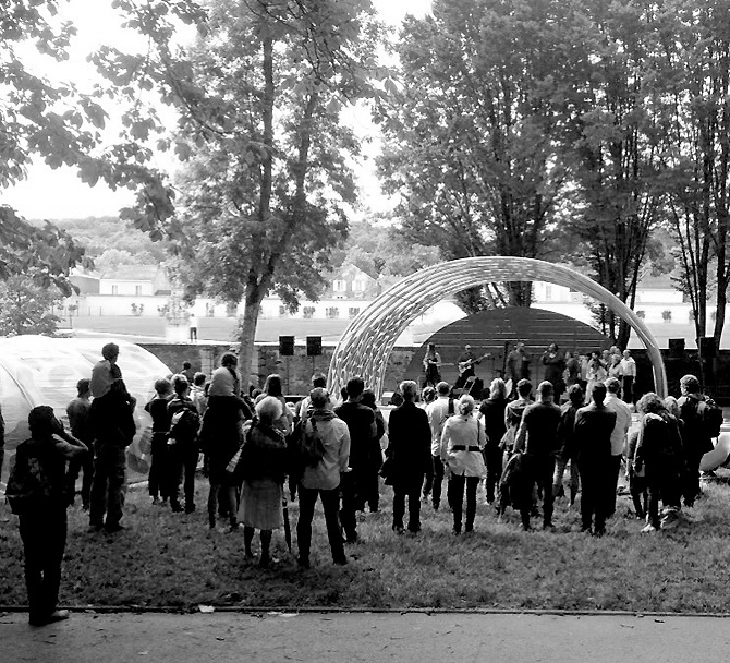 avec les participant.e.s (étudiant.e.s en architectures polonais allemands, français, italiens, mexicains...) ils ont conçus et réalisé un pavillon pour un centre culturel local.