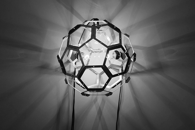 Nouveau prototype de luminaire : Fullerene C60 est présenté par l'association NOPOTO. au 15 rue Richard Lenoir & 7 rue de François-de-Neufchâteau à la galerie galerie Satellite, Paris 11ème. Les 4, 5, 6, 11, 12, 13 décembre.