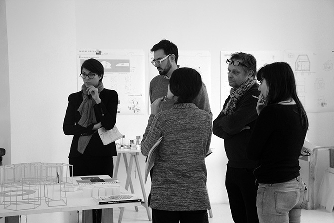 Jury de l'atelier Social Machine/Assemblage, mené par Claire Petetin et Martial Marquet à l'ENSA VERSAILLES.