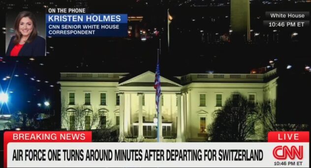 While carrying President Donald Trump, Air Force One took a U-turn shortly after taking off for Davos, Switzerland, where Trump is scheduled to speak on Wednesday.