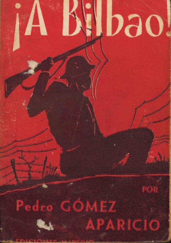 Gómez Aparicio, Pedro. ¡A Bilbao! Estampas de la Guerra en Vizcaya. Granada: Librería Prieto (Ediciones Imperio), 1937. Octavo (17.5 x 12.2 cm). Original color printed wrappers; 354 pp., illustrated. Some light wear and soiling to covers, mild browning to pages, overall very good. (