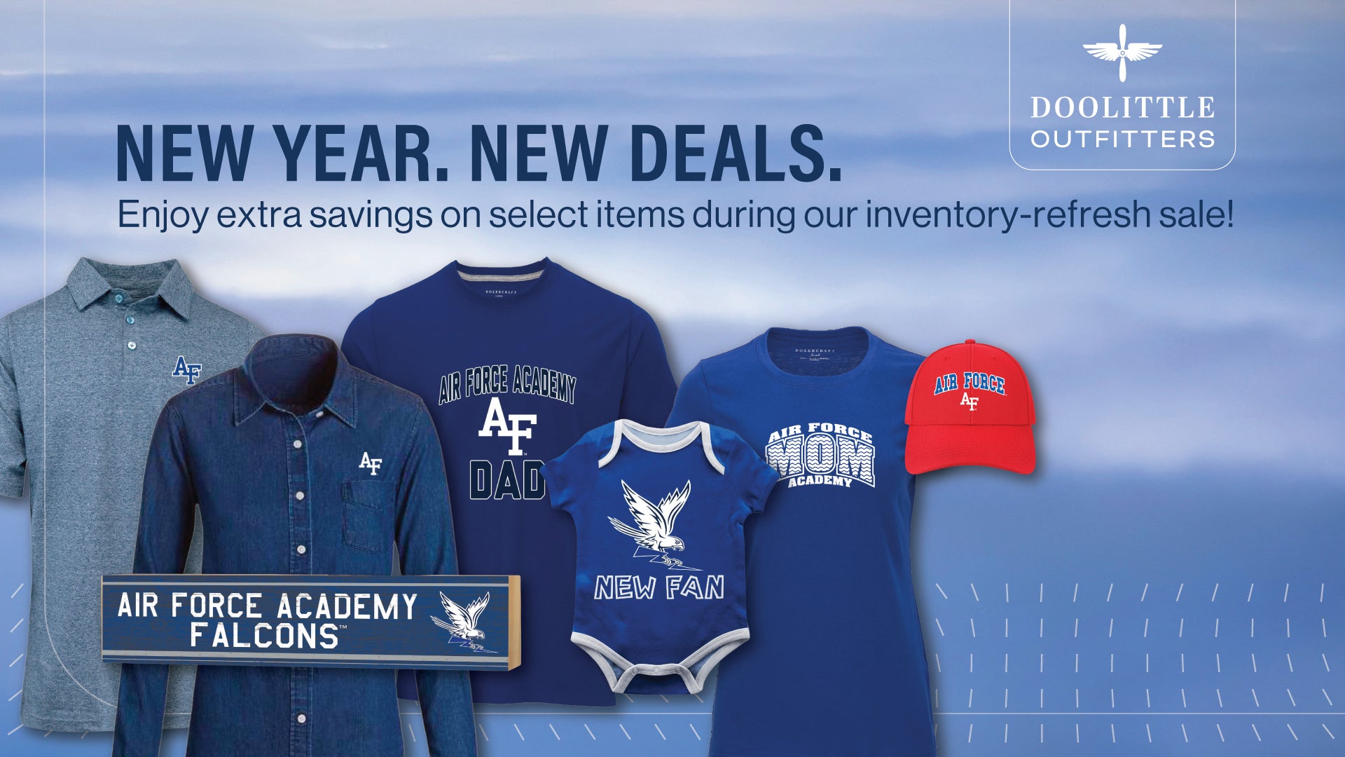 Located at Doolittle Hall on the Academy, Doolittle Outfitters proudly serves graduates, alumni, cadets, and their families. As the official store of the U.S. Air Force Academy Association & Foundation, we offer licensed apparel and gifts that honor heritage, milestones, and the shared bond that connects the Long Blue Line. Visit us in person or shop online.