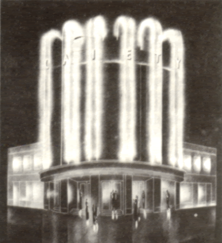 A different sort of memorial has been granted to the Gaiety in Lewes Road, which if it lived up to its artist's impression (above) back in 1937 must have resembled a futuristic pleasure palace with its sleek lines and glowing neon pillars. The cinema was closed and demolished in 1980 after various changes of name and ownership, and no trace of the building survives; but we were delighted to read that the 'Vogue Gyratory' road junction, subsequently situated nearby, was so called after the cinema's 1970s incarnation when, trading as the Vogue, it specialised in pornographic features and live strip shows - so the mechanical gyrations and stylized collisions of its patrons and performers are preserved, endlessly replayed through the medium of this Ballardian intersection.