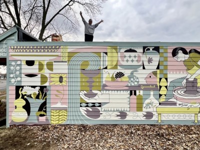 Art Nook connects folks to downtown businesses and showcases a colorful mural by artist Kevin Gano.