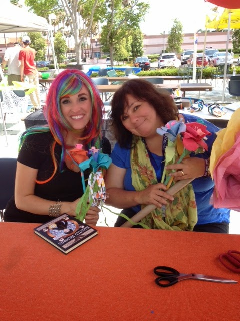 I had a superfun time yesterday at the Young Author Fair, sitting under an umbrella at the Tustin Library making toys and paper flowers with kids. The one thing I learned was that it is so important for parents to let their kids play with art. We made flowers using two pieces of construction paper and tape, no scissors needed. So pretty, don't you think? When the kids started to stress that "It wasn't right." I told them that flowers aren't made in a factory. They grow in a all sizes and kinds. This brave young lady had written a book on bullying. There were lots of other young authors reading their work. It was a great day! Thanks to Barnes and Noble, I got to hang out with lots of wonderful folks and finally got meet awesome writer and artist, Salina Yoon. We've been online friends for years and finally got to meet for reals. :-) I also got a peek at her new picture book, "Found". It is a winner! I also got to meet the adorable Sheri Fink and read her books. Her positive energy and enthusiasm is contagious. I'm inspired! Marilyn. -- Reading is everything. Reading makes me feel like I’ve accomplished something, learned something, become a better person. Reading makes me smarter. Reading gives me something to talk about later on. Reading is the unbelievably healthy way my attention deficit disorder medicates itself. Reading is escape, and the opposite of escape; it’s a way to make contact with reality after a day of making things up, and it’s a way of making contact with someone else’s imagination after a day that’s all too real. Reading is grist. Reading is bliss. ~ Nora Ephron |