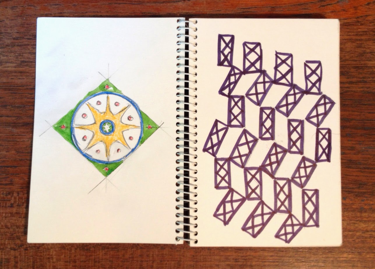 I've been going through old sketchbooks and filling the blank pages with new versions of my old drawings. The flowers on the right were from a beautiful day I spent sketching textiles in the Victoria and Albert Museum in London a very long time ago. The new doodle is on the left. Here are some more bits and pieces... I found this funny bird toy idea that I think is supposed to have articulated parts, where when you pull on the tail the head and feet move... What was I thinking? Note to past self, make notes about the back of the design. Pen and ink practice Old sketch on the right, new ornament on the left... I like the soft colors on this page. Rather dreamlike, don't you think? I would love to go back to London just to fill sketchbooks with little lines. If you could go on a drawing tour anywhere in the world where would tickle your fancy? Marilyn. -- “Art washes away from the soul the dust of everyday life.” ~ Pablo Picasso |