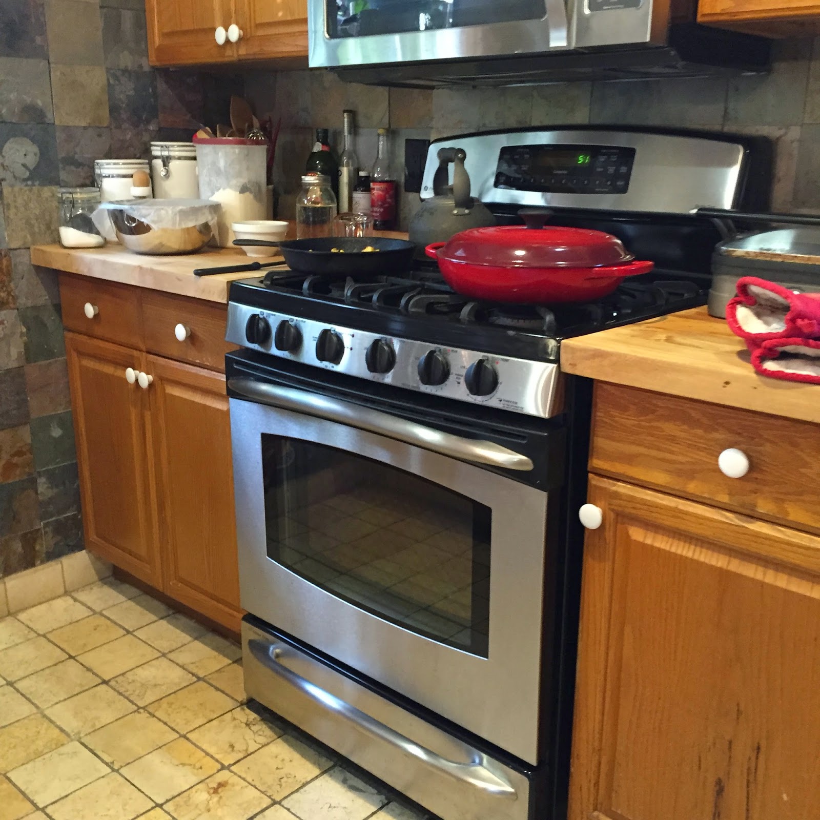 When we first bought our house two dozen years ago, I hated the kitchen. The whole house was a fixer upper from hell, with orange wall paper, green linoleum and iffy plumbing. Nothing worked, the fuses blew if you even thought about running more than one appliance at a time and it was cramped as a submarine. Over the years, the hub has replaced ever bit of it, even the fuses, so I can run the microwave and the dishwasher at the same time.... and now I love our little kitchen. We still have to walk sideways like crabs when we are all in there, and yell, "Hot behind you!"when we open the oven, but it works. I'm still in the middle of breadbaking mania. After watching a TED talk on how to learn a skill in 20 hours, https://www.youtube.com/watch?v=5MgBikgcWnY, I decided to bake 20 loaves of bread, trying to make each one a little bit better each time. The goal is a crispy crunchy crust and a chewy airy crumb. One loaf I made had a nice mix of seeds and grain. Some loaves were prettier than others. I baked #13 yesterday and it came out just fine. Each loaf is exciting in a small, humble way. I like finding out what happens if the recipe is tweaked a little. It's teaching me patience. The baked loaf has to sit for at least 20 minutes before you cut it or it will be gummy. Bread baking is teaching me planning, a loaf for Friday needs a starter feed on Monday, sponge making on Thursday and shaping and baking on Friday morning. It's helped to have my mate, Celia, bread baker extraordinaire from Fig Jam and Lime Cordial, patting my hand and giving me good advice along the way. I've been getting a lot of good use out of my Le Creuset red brassier, I made a cassoulet for the first time. And Chicken Spinach Rollups... For Valentines, my man got me Orange Marmalade, Bergamot Jam, vanilla and a cool kitty cookie cutter. The Farmer's Market had these beautiful red oranges, so I made a salad with feta and spiced pecans. So, that's what's in my little kitchen. For my next 20 Hour challenge, I'm trying to get better at drawing hands. What skill would you like to learn? Wishing you a creative week, Marilyn. -- I am always doing that which I can not do, in order that I may learn how to do it. ~ Pablo Picasso Tags: in my kitchen |