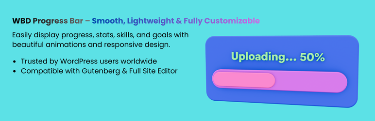 The WBD Progress Bar block is a simple yet powerful tool for displaying progress, statistics, skills, or any percentage-based data on your WordPress site. Built with modern web standards, this block offers smooth animations and a clean, professional appearance.